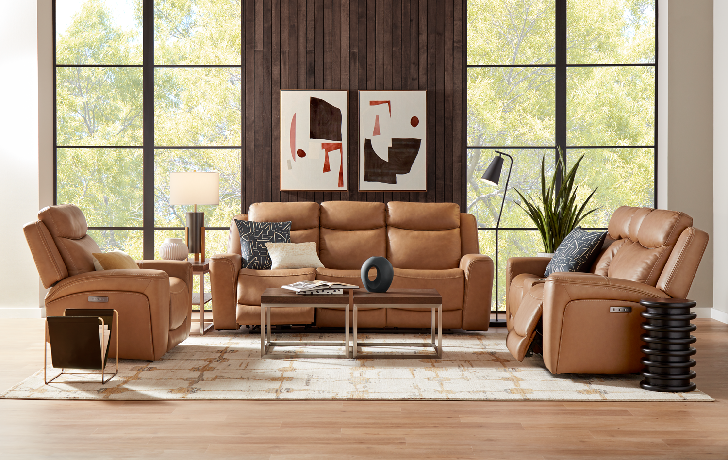 Wrapped in soft top-grain leather, this piece invites you to sink into comfort with the touch of a button. Choose from two rich color options, and discover hidden cupholders and storage that keep everything within reach. Dual power reclining headrests and footrests let you relax in perfect harmony.