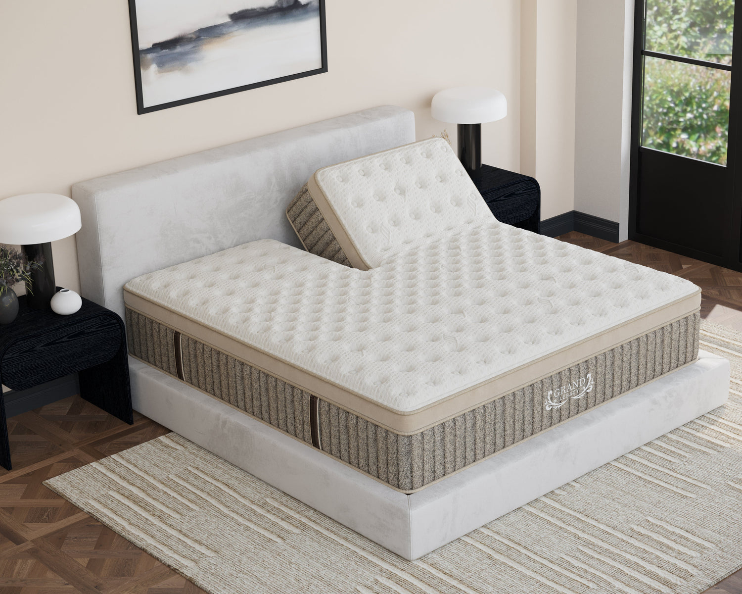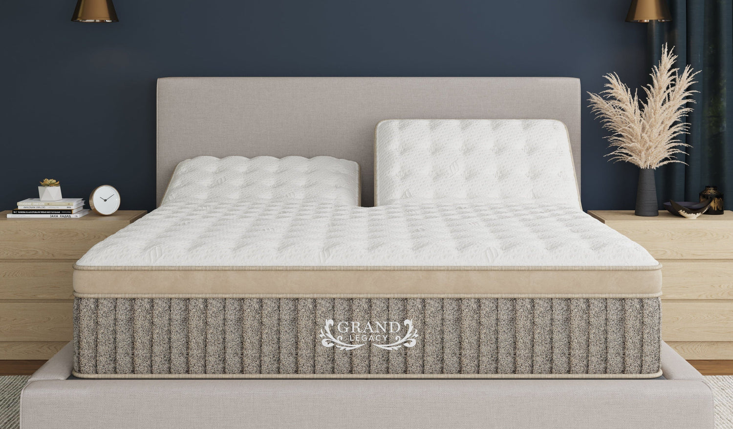 Experience the ultimate in personalized comfort. The Grand Legacy split-head design combined with a split-head adjustable base offers unique benefits for couples, including reduced snoring and the freedom to accommodate different sleep schedules. Enjoy a customized sleep experience every night, all while eliminating that annoying middle seam where items tend to slip.