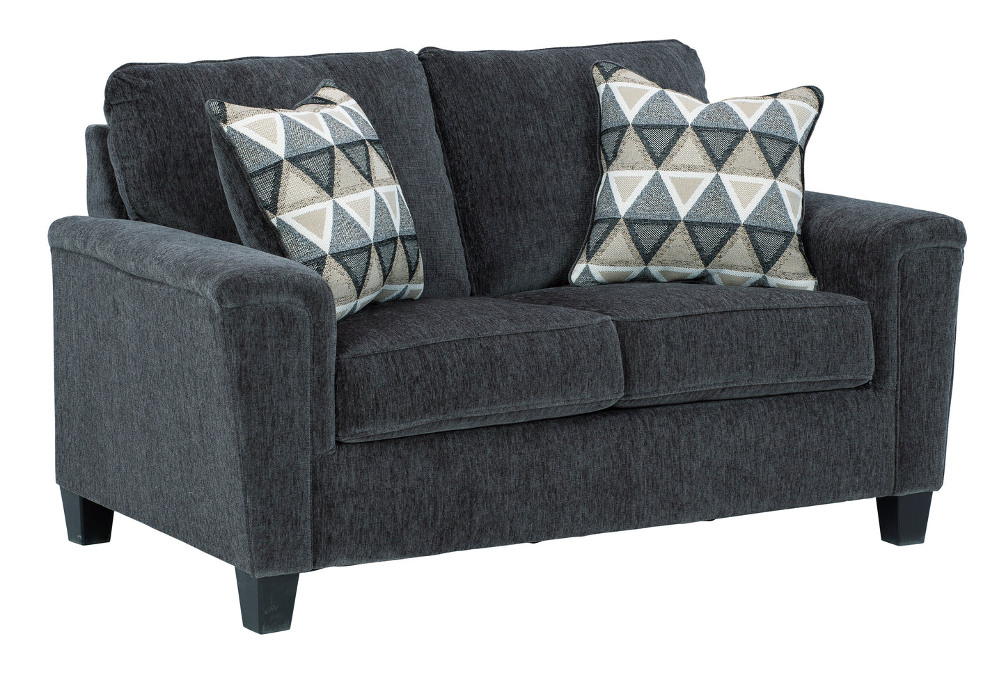 If you’re looking for a smokin’ hot look priced to entice, you’re sure to find this space-conscious, budget-conscious loveseat beautifully fits the bill. Covered in a smoke gray chenille upholstery loaded with plush texture, this less-is-more contemporary loveseat is dressed to impress with angled side profiling and track armrests wrapped with a layer of pillowy softness for that little something extra. Crisp and clean, the 2-over-2 cushion styling adds up to one sensational look.