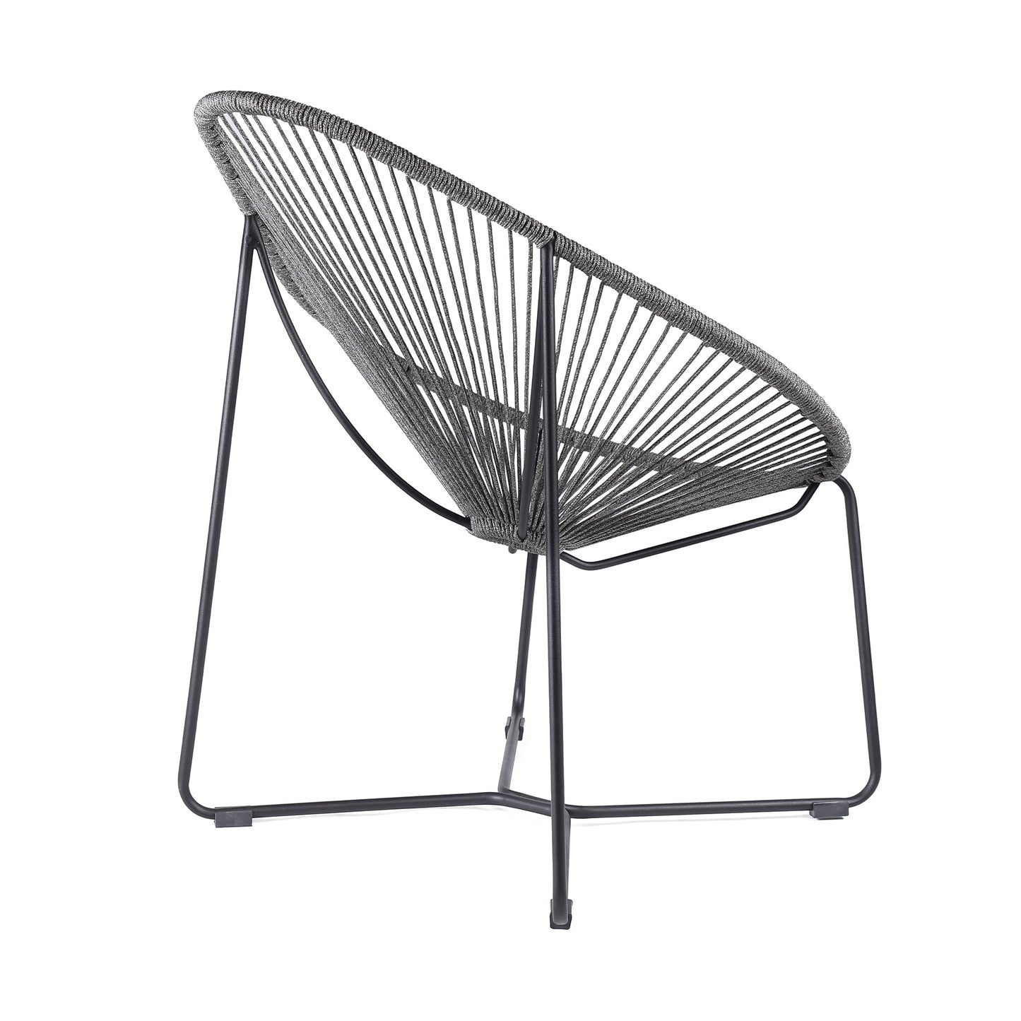 The Acapulco Indoor Outdoor Steel Papasan Lounge Chair with Gray Rope from Armen Living will bring an exciting, fun, and enjoyable look into your outdoor living area. Featuring an elaborate woven design and rounded metal frame, this chair will blend seamlessly into your outdoor decor. Its pear-shaped seat is wrapped in resilient regatta rope cording, providing supple support while still allowing for element passthrough - also enhancing your seating experience with a softness that rivals most fabrics. The Acapulco chair covers your body perfectly and will keep you relaxed and let you unwind during your favorite season.