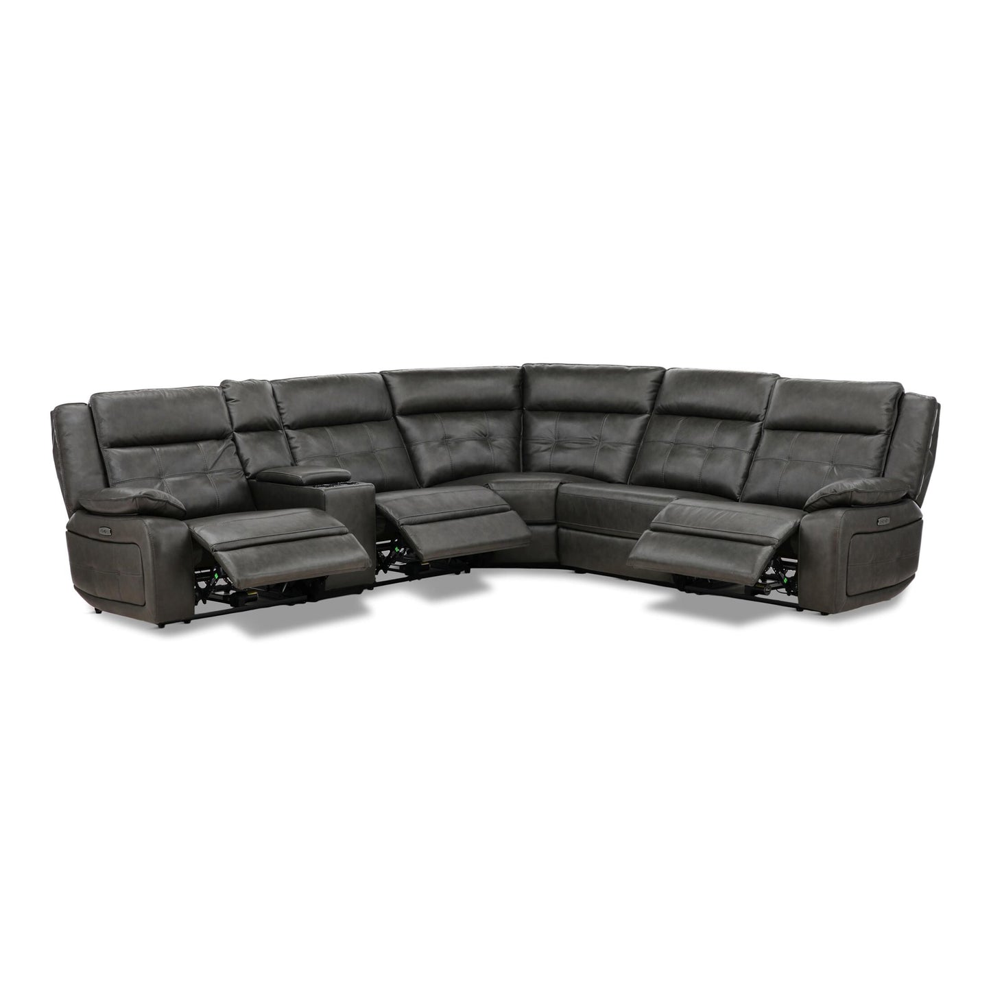 Introducing the Afton power reclining sectional - a harmonious blend of luxury, functionality, and enduring elegance. Crafted with precision and care, this sectional is poised to redefine your relaxation experience. Indulge in the embrace of our meticulously designed seating, offering a perfect balance of support and softness. Whether you're hosting gatherings or indulging in personal downtime, this sectional promises hours of contentment. Experience the epitome of relaxation with the power recline feature, allowing you to effortlessly find your preferred lounging position at the touch of a button. The adjustable power headrests provide customized neck and head support, ensuring optimal comfort no matter how you choose to unwind.