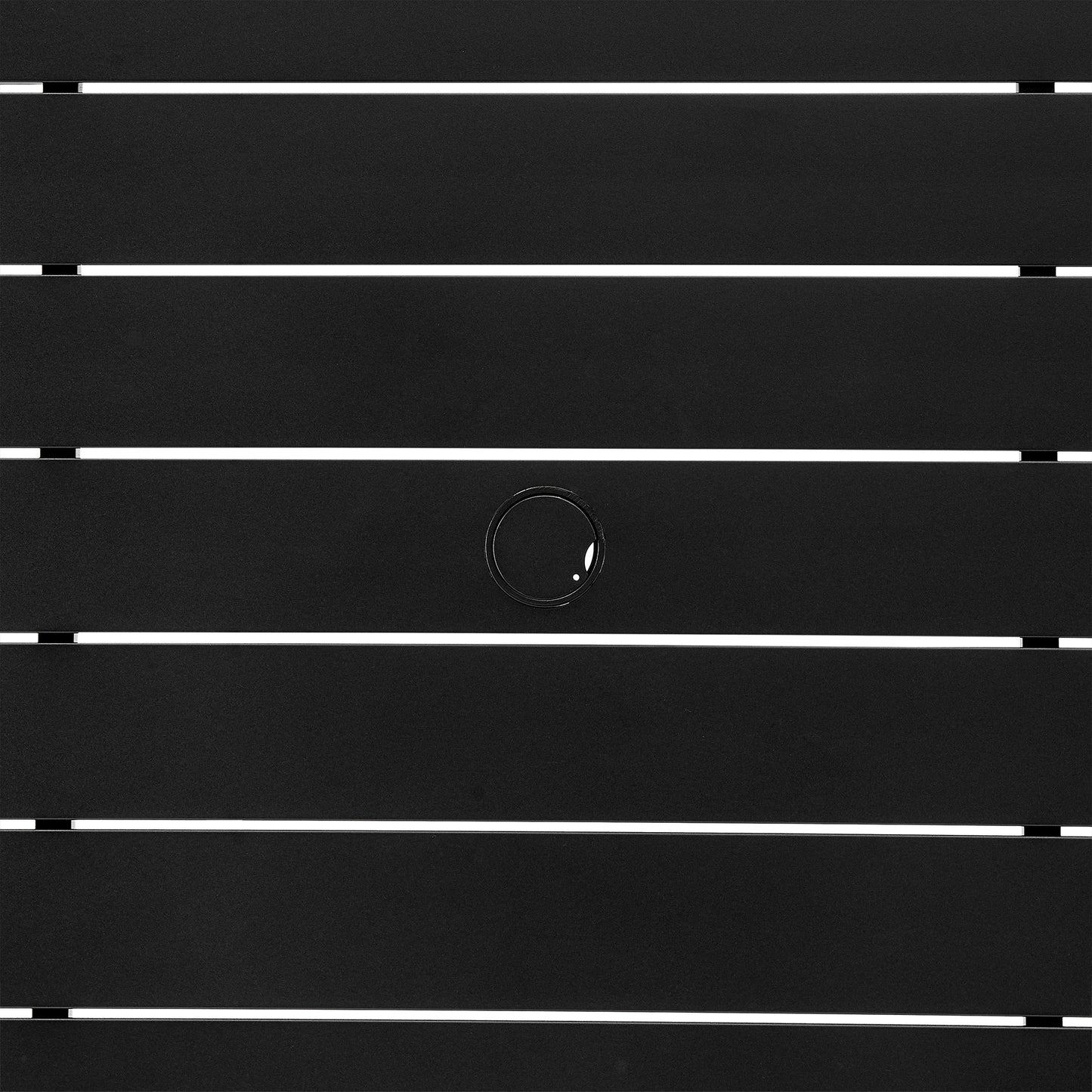 Enjoy your outdoor space to the fullest with the Aileen outdoor dining table from Armen Living. Defined by clean lines and refined silhouette, the patio table befits any setting indoor or outdoor. The rectangular outdoor dining table makes a sleek statement with the smooth and sturdy finish of black powder-coated aluminum, and it can easily incorporate to your existing decor. Crafted to perfection, our Aileen outdoor dining table can accommodate up to 8 seats. Aluminum is a light and rust proof material and can be moved from your backyard, to your screened in porch, to your garden with ease! The chic aluminum table and frame feature a multi-layer powder coating for effective protection from the weather, UV, everyday wear, and tear. The slat style tabletop of this outdoor furniture piece helps elements to easily pass through which adds to its durability, while the umbrella hole adds to its convenience.