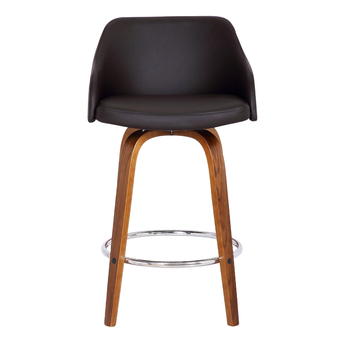 Add a touch of mid-century modern glamour to your home with the Alec 26" Counter Height Swivel Gray Faux Leather and Black Wood Bar Stool from Armen Living. The retro silhouette exudes timeless appeal that would easily fit into any home regardless of the existing design theme. The Alec kitchen stool features a beautiful wood frame and seat back that wrap around a luxurious high-density foam cushioned back and seat. Upholstered in soft faux leather upholstery, the Alec provides a full mobility with a 360-degree swivel function that enables you to engage with your guests regardless of their place in the room!