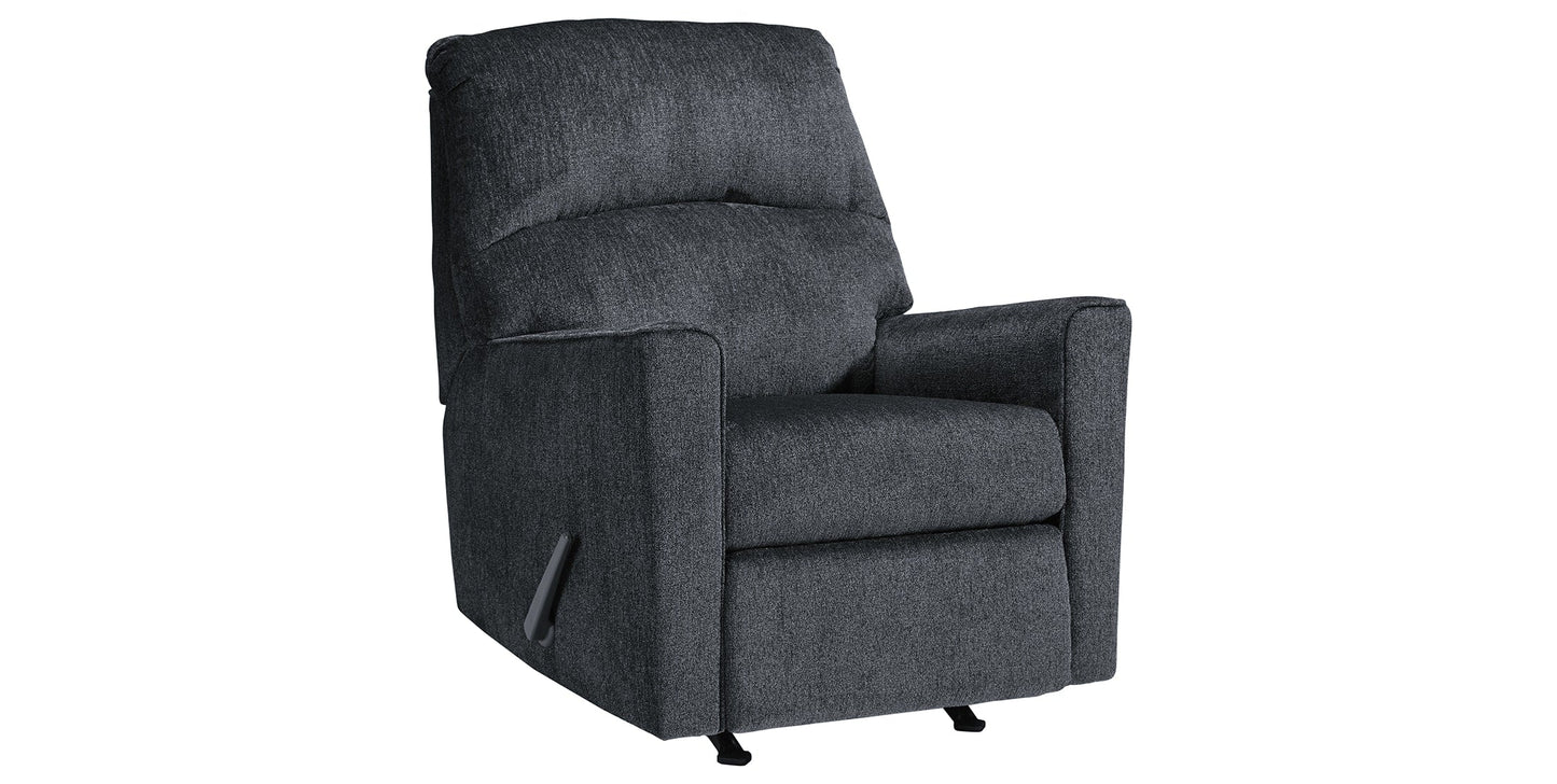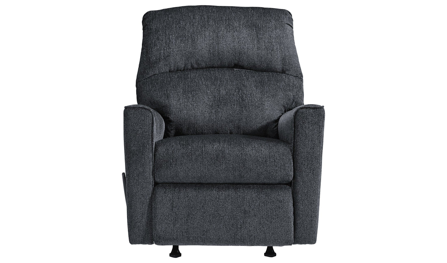 If style is the question, then this rocker recliner is the answer. Clean-lined profile is beautifully contemporary. Plush chenille fabric and plump cushioning make it so easy to comfortably kick up your heels. Richly neutral hue complements a variety of decor.