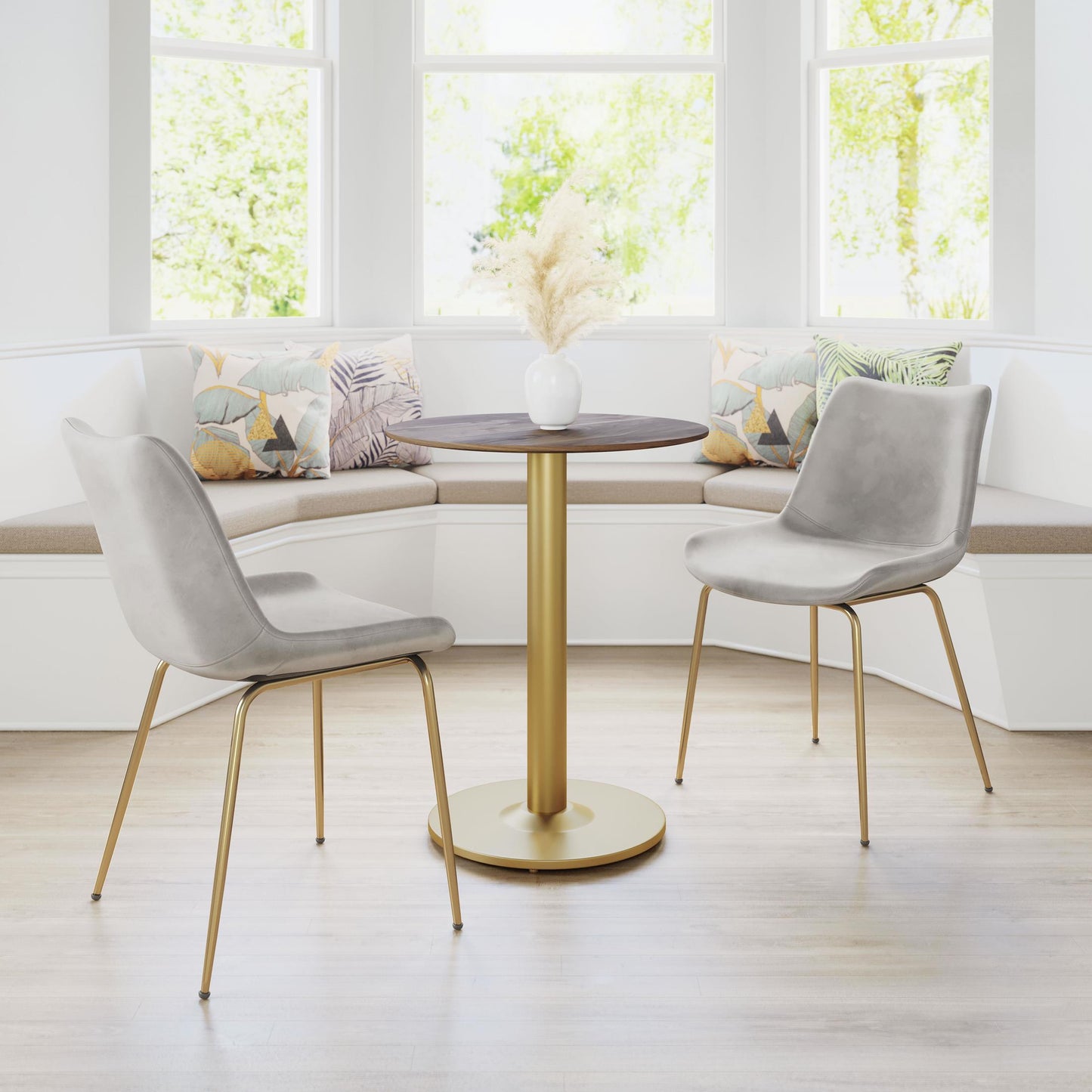 A stylish and hardworking table for all of your spaces: kitchen, living room, office, or bar area. A disc floats on a pedestal that appears to emerge from the ground.