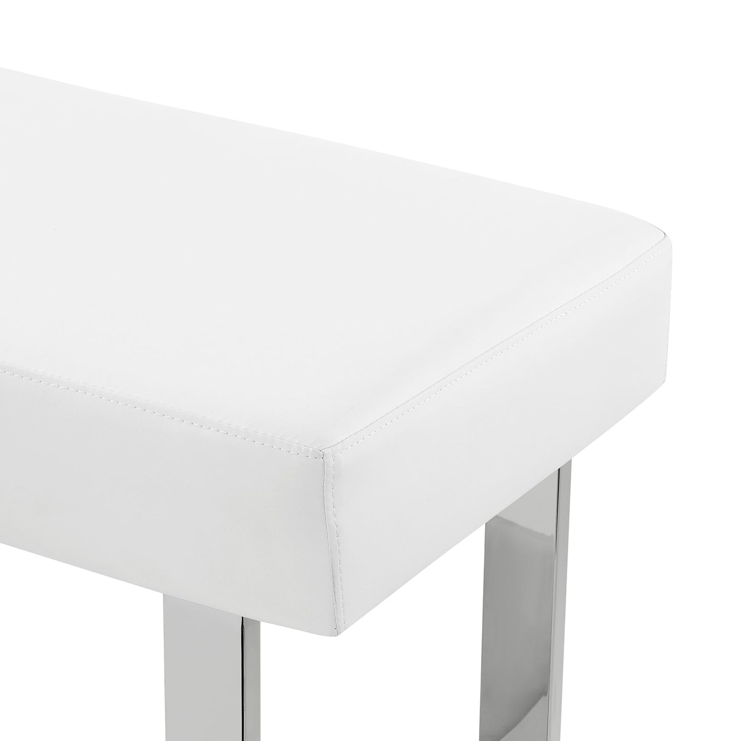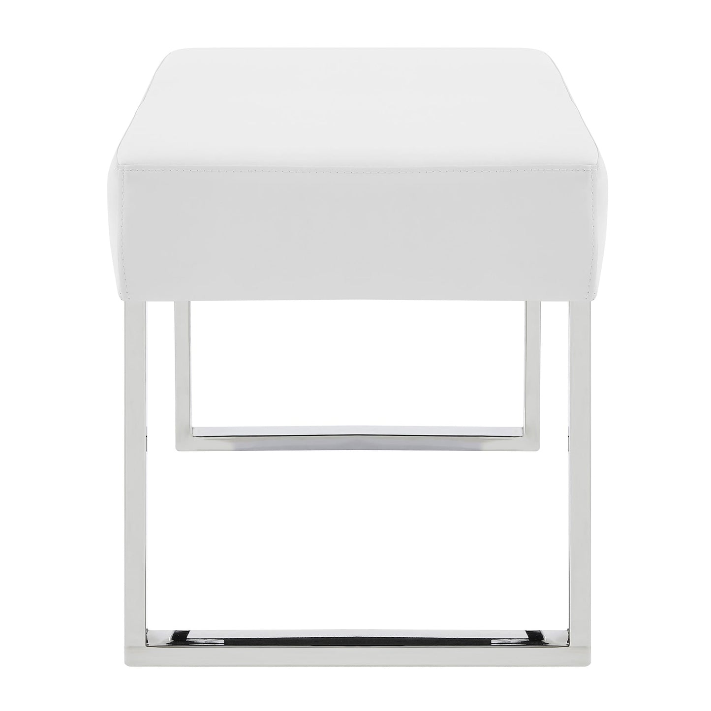 The Armen Living Amanda contemporary bench is a beautiful piece sure to add extra style to any modern living room. The Amanda boasts sleek faux leather upholstery over a sturdy chrome metal frame. The Amanda's sleek metal legs assure durability without detracting from the style of the piece. The Amanda bench is ideal when paired with the Amanda dining table, corner sofa, and side chair. This piece is a unique and eye-catching bench that elevates any home style. This bench is crafted with the best materials for a high-quality, long lasting bench you can display in your home. The Amanda can be used in multiple parts of the home and can serve both functional and decorative purposes. You can place this beautiful bench, in your bedroom, hallway, living room, den or even in your home office.