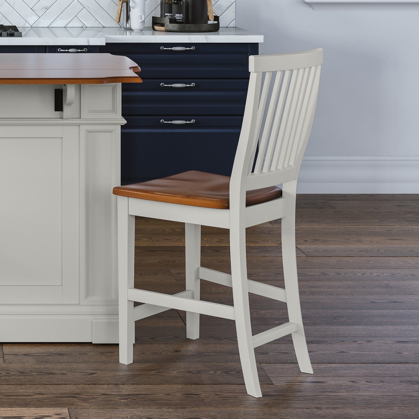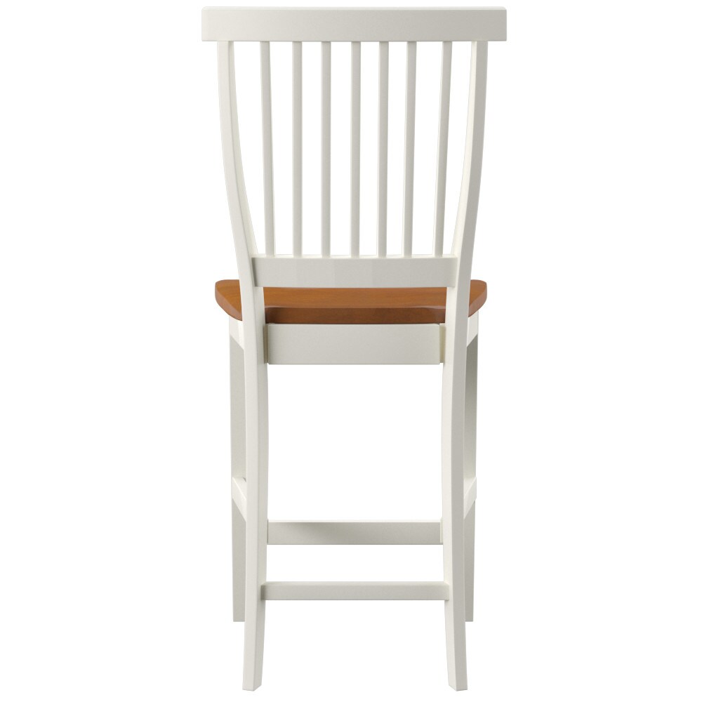 Pull up a stool to your home bar or kitchen island with this Homestyles Americana Counter Stool. The contoured seat and back mirror the curves of your body for outstanding comfort. The distressed oak seat provides a nice contrast to the off-white finish. The hardwood frame is durable and easy to clean.