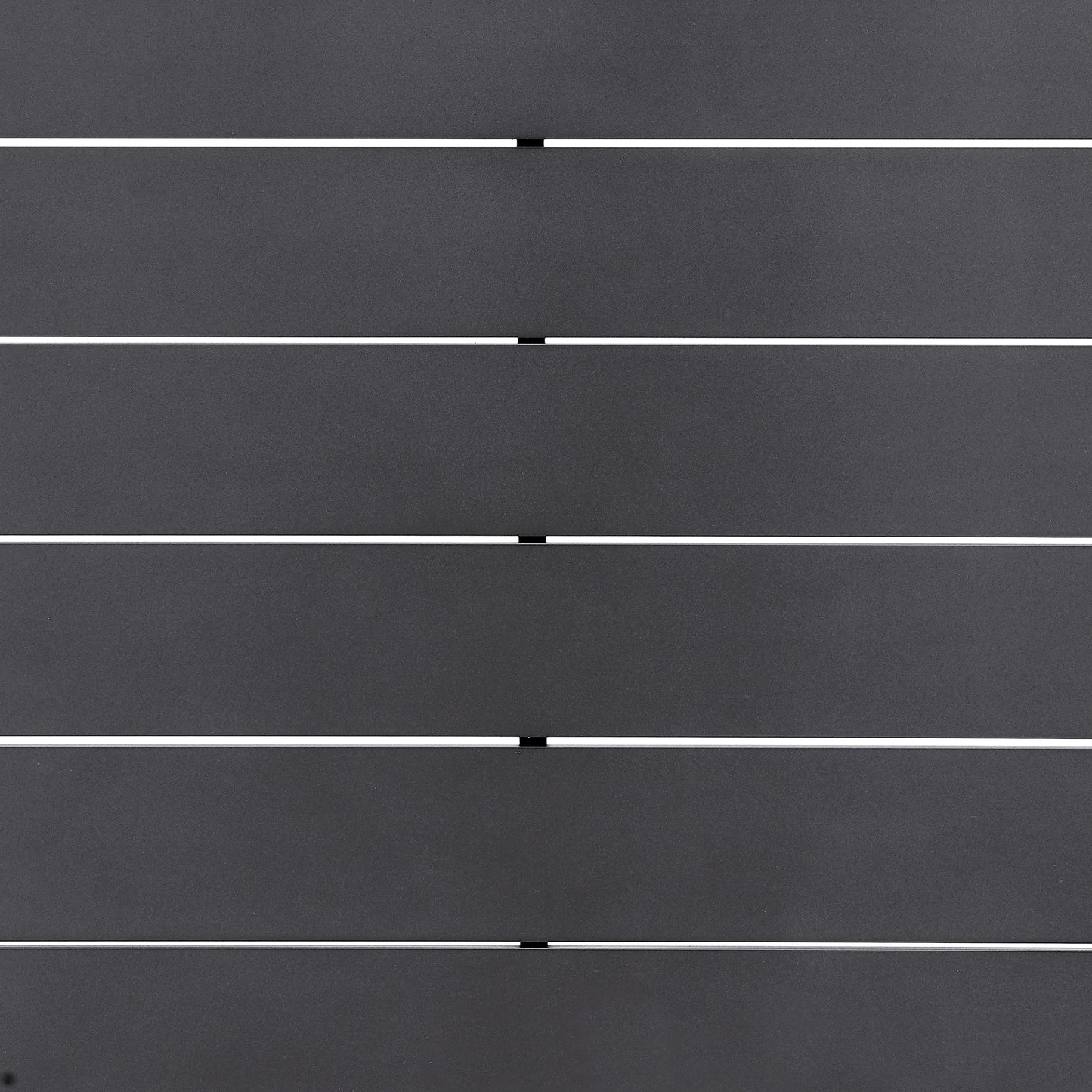 Dine out with fresh and open-air with the Argiope outdoor dining table from Armen Living. The Argiope outdoor dining table features a beautiful dark gray powder-coated finish, and its size accommodates 6-8 seats comfortably. Sleek and minimal, this patio table can complement any outdoor space. This is the perfect piece of outdoor patio furniture for enjoying morning breakfast, afternoon meals, and candlelight dinners, the dining table remains a welcoming addition to a patio, backyard, pool area, garden, or screened in porch. The slats upon the table bring visual interest and they help the elements easily pass through, adding to this table’s durability. It is made with lightweight, sleek, and sturdy powder-coated aluminum making it easy to move to your desired location. This patio table features a multi-layer powder coating for effective protection from UV, rust, weather, everyday wear, and tear.