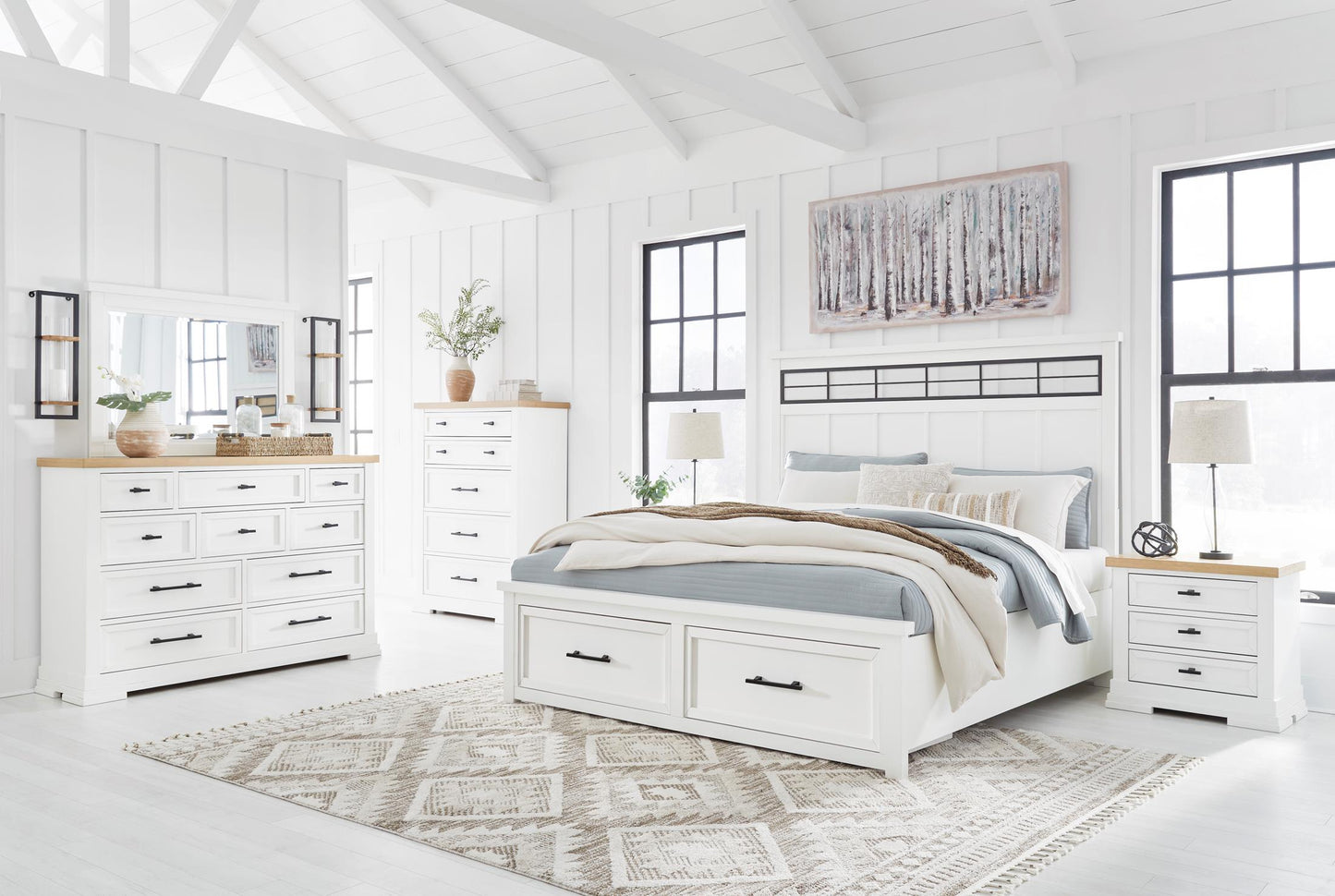 Casual style with substance. This two-tone nightstand raises the bar on comfortably cozy design in your soothing sanctuary. A sturdy silhouette with a classic white finish and black metal hardware exudes modern farmhouse vibes. The butcher block oak veneer top adds a relaxed aesthetic. And bedside charging for your go-to devices is made easy with power outlets and USB ports.