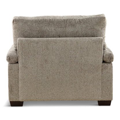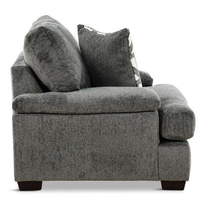 Indulge in the luxurious comfort of the Auden collection, featuring deep seating and distinctive recessed low padded pillow arms. This versatile collection is ideal for various activities, from casual lounging and web browsing to hosting game nights or enjoying a peaceful afternoon nap. This collection is elegantly upholstered in a soft, low-pile chenille fabric that combines durability with everyday comfort. The practicality is enhanced by its ability to withstand daily use while maintaining its plus appeal. As an added value, all accent pillows are included in the price, complementing the overall design. Proudly crafted in the USA, the Auden collection brings both quality and style to you living space, ensuring a perfect blend of comfort and elegance for your home.