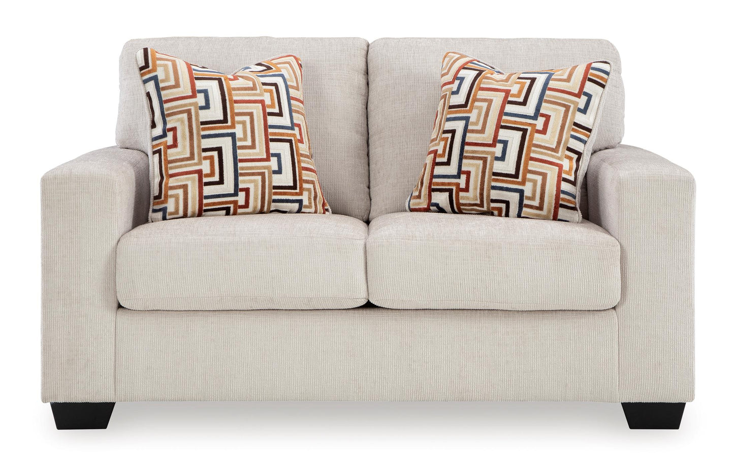 Looking to make a bold statement with color? Liven up your living room with this loveseat. Its trend-right burnt orange upholstery adds a playful pop of color to your decor. Bold and eclectic accent pillows complete the look. Pairing posh style with everyday comfort, this piece is a welcome addition to contemporary spaces.