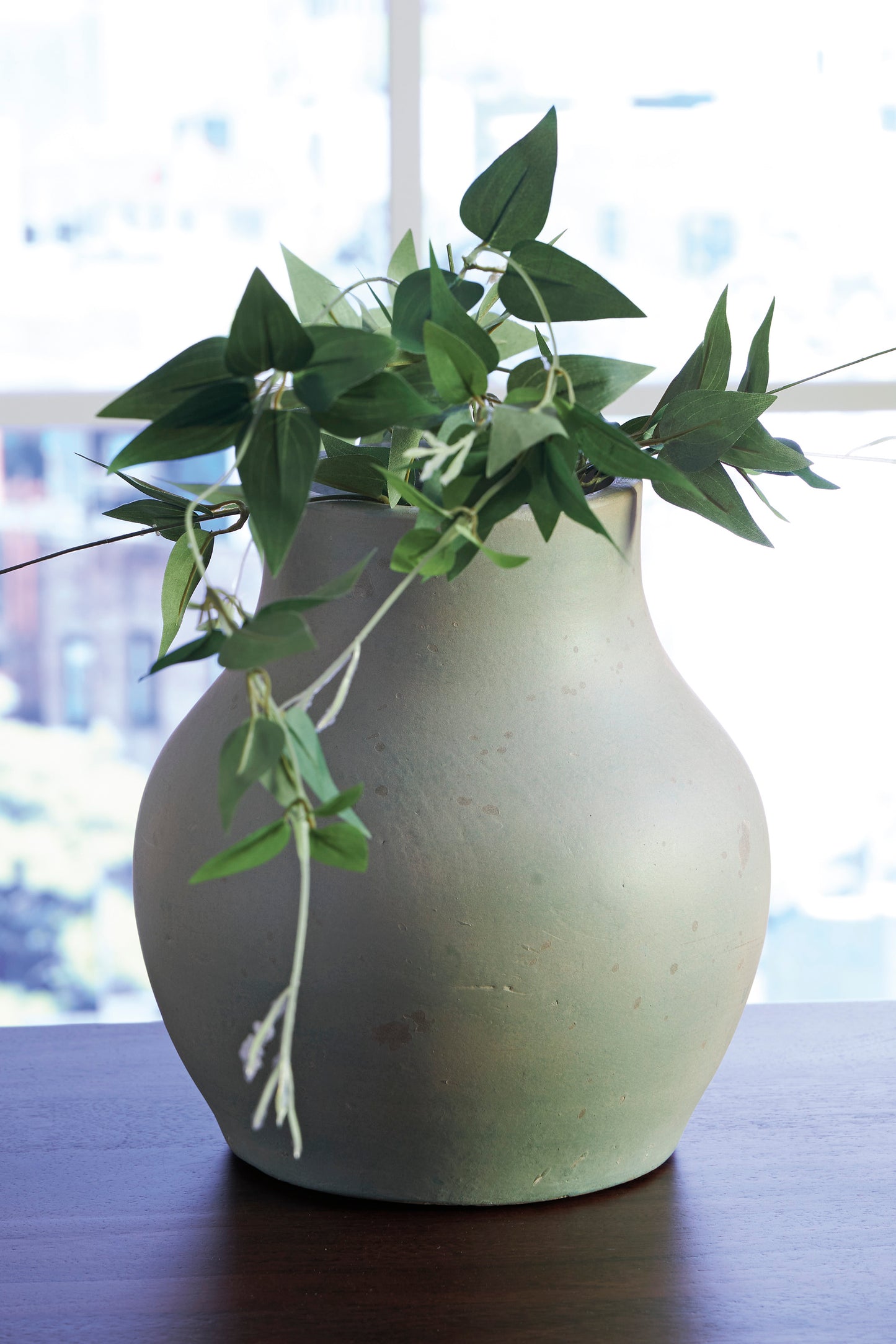Bring a touch of rustic charm and casual elegance to your home with this terra cotta vase. The antiqued green finish gives it a beautifully weathered look, adding character to your creatively curated space. Let the piece shine on its own, or change things up and add faux florals or other decorative fillers.