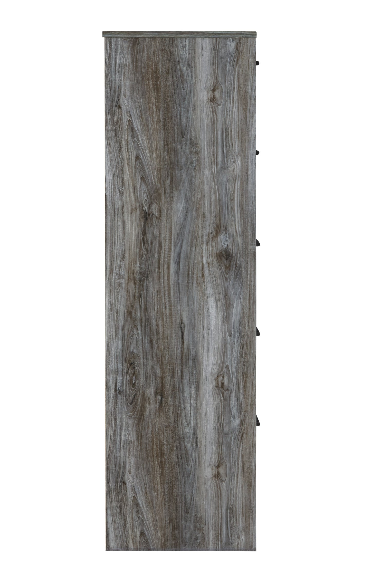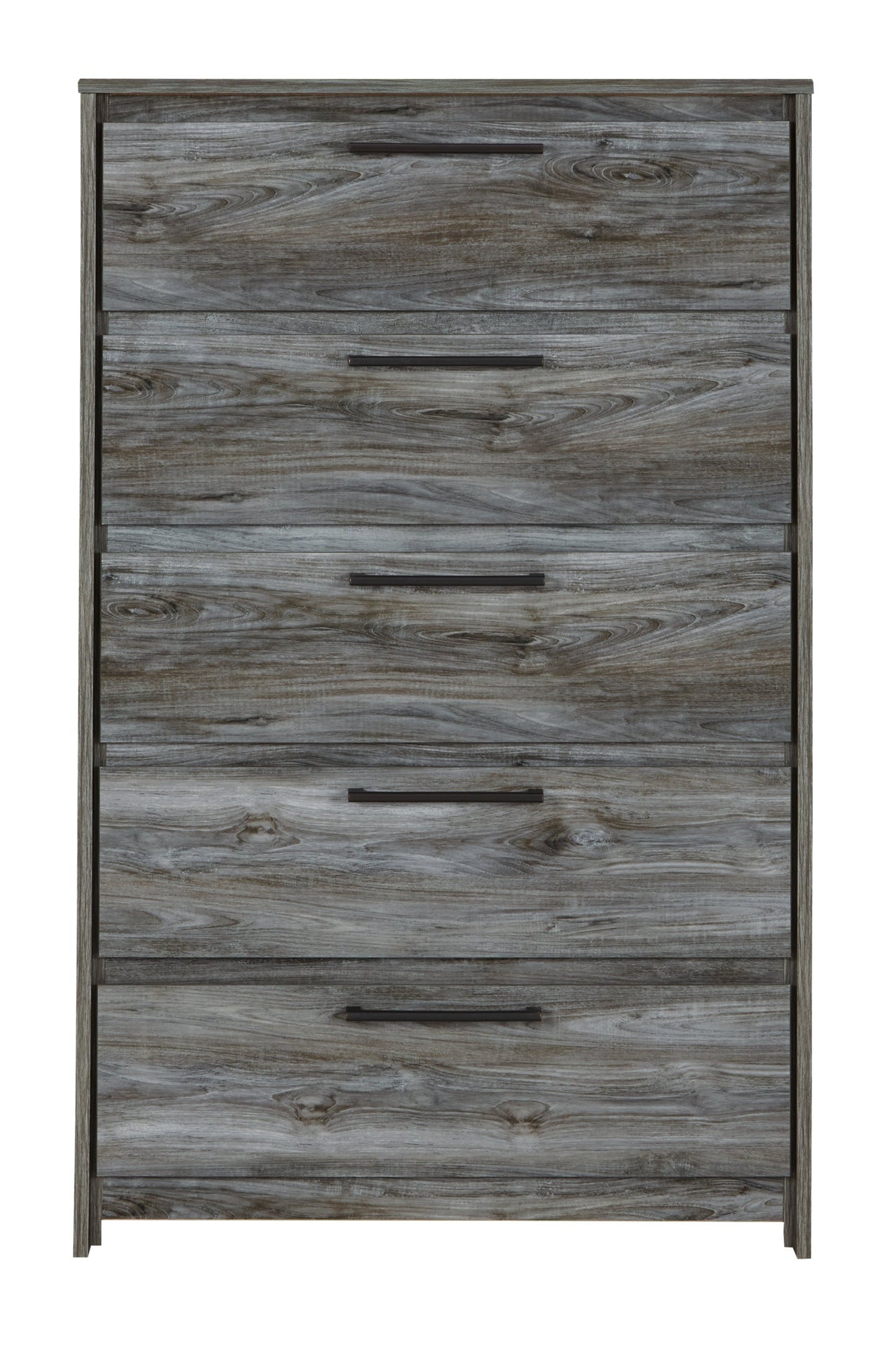 Beachy style and lots of storage go hand in hand with this 5-drawer chest. Its driftwood and surfer-inspired smoky finish creates a rustic look that's perfect for setting the scene of an island getaway. Five roomy drawers give you the space needed for stowing away clothes and more. Clean lines and modern handles provide an authentic look to be admired for years to come.