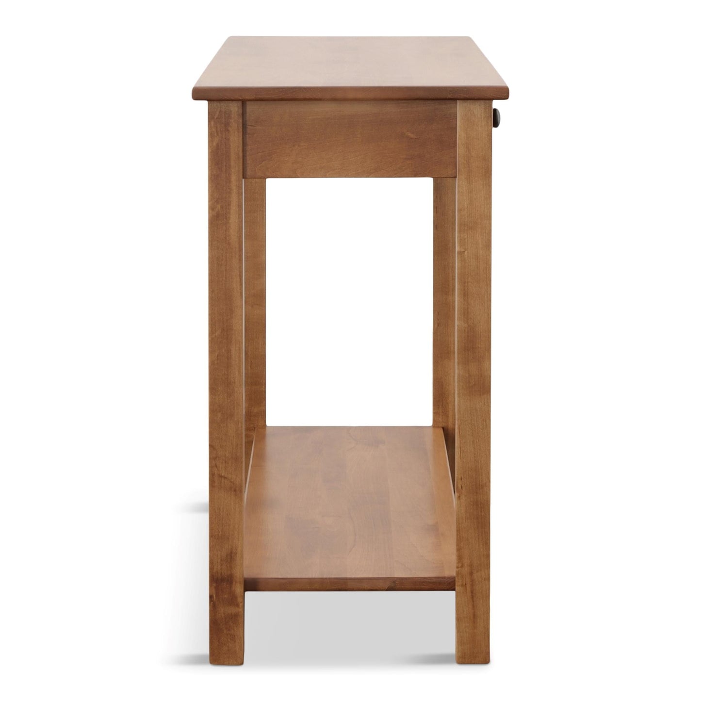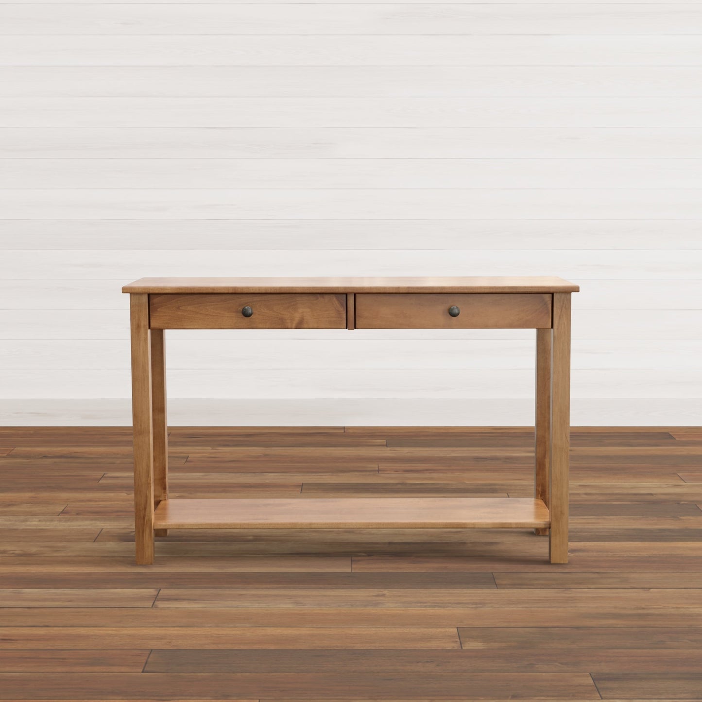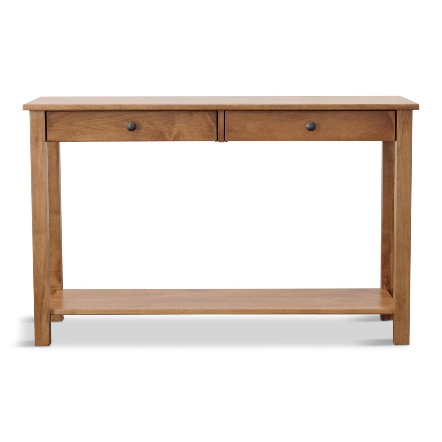 Cherry oak wood looks so good on the Bedford sofa table. This table's design is sure to elevate the aesthetic of any room it is in. A fixed shelf provides display space for your favorite whatnots, while two drawers help keep essentials out of sight.