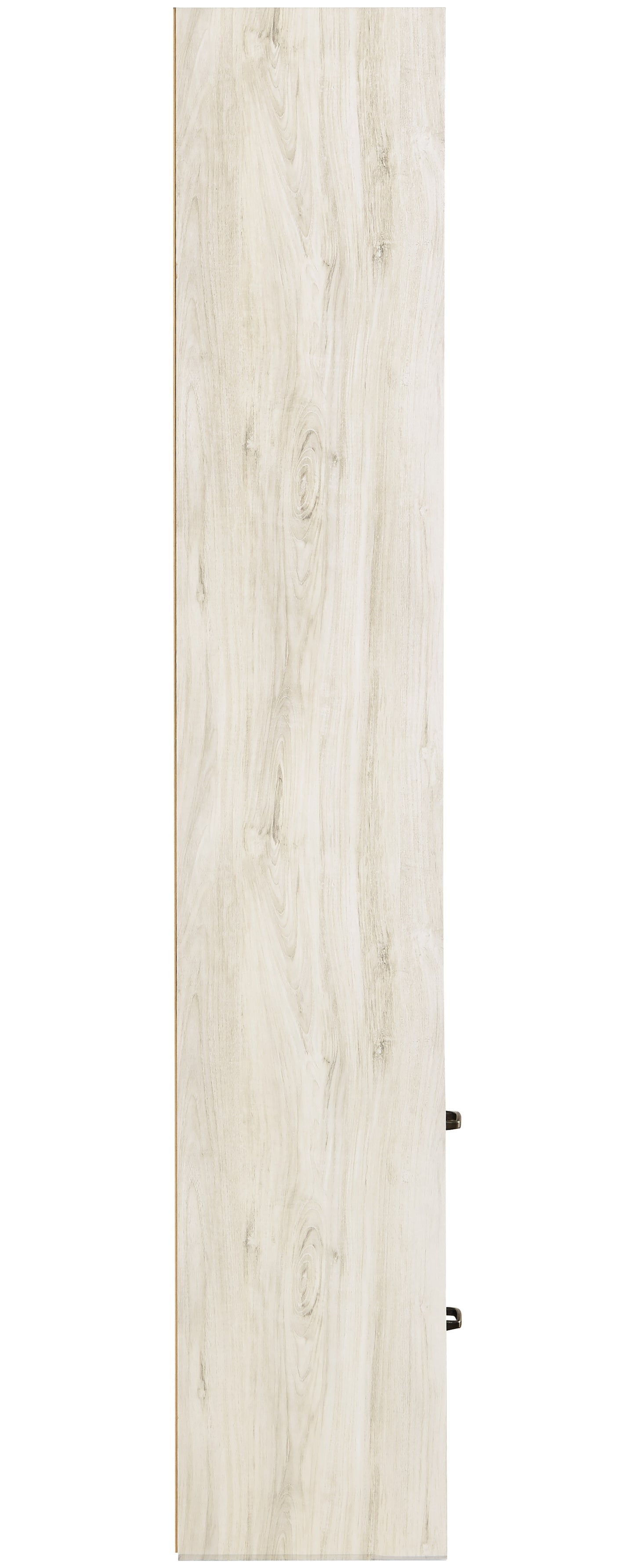 Express your farmhouse style with this TV pier. Its wispy white finish over replicated oak wood grain is a delightful change from the ordinary. Clean-lined styling gives the country chic aesthetic a fresh, contemporary appeal. The reversible door can open left or right with consumer assembly modification.