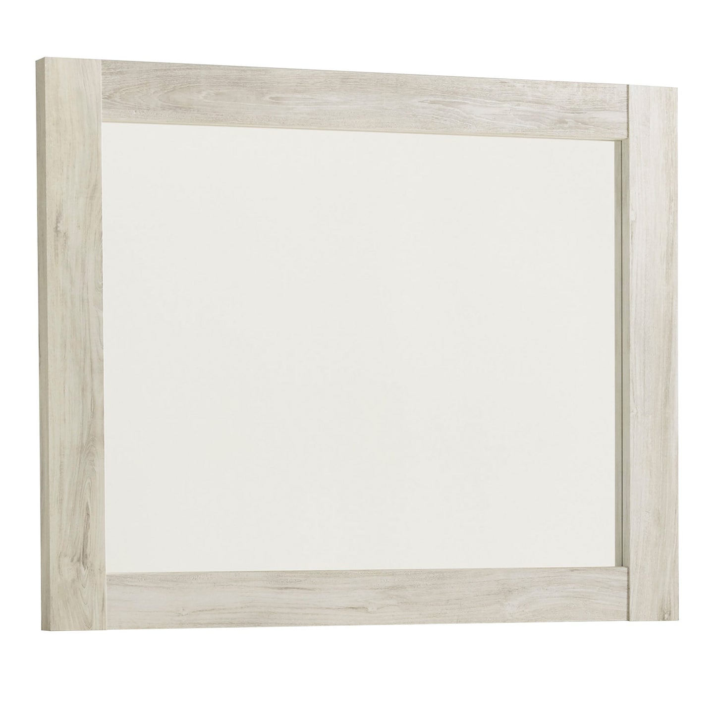 Your bedroom isn’t just a room. It’s a canvas. Express your farmhouse style with the Bellaby mirror. Wispy white finish over replicated oak wood grain brightens up the space with charm. This clean-lined profile is the perfect authentic foundation for inviting decor. This item does not stand alone and the dresser is sold separately.