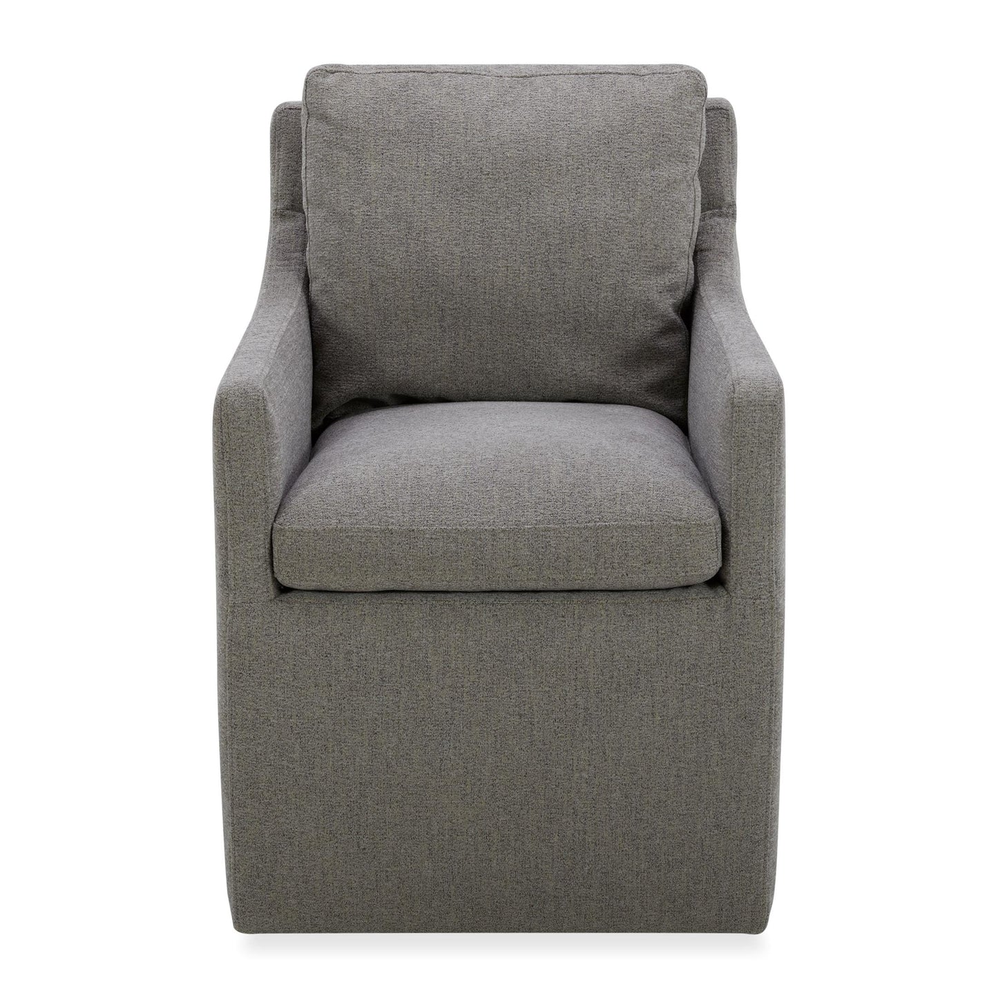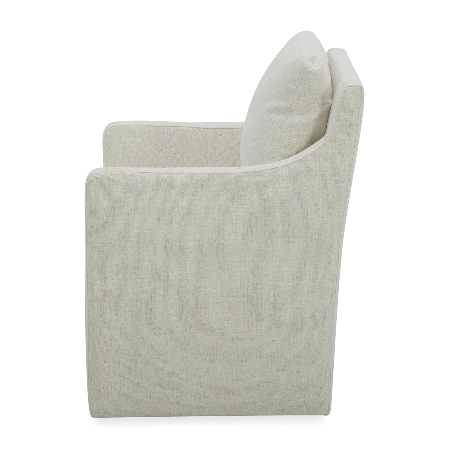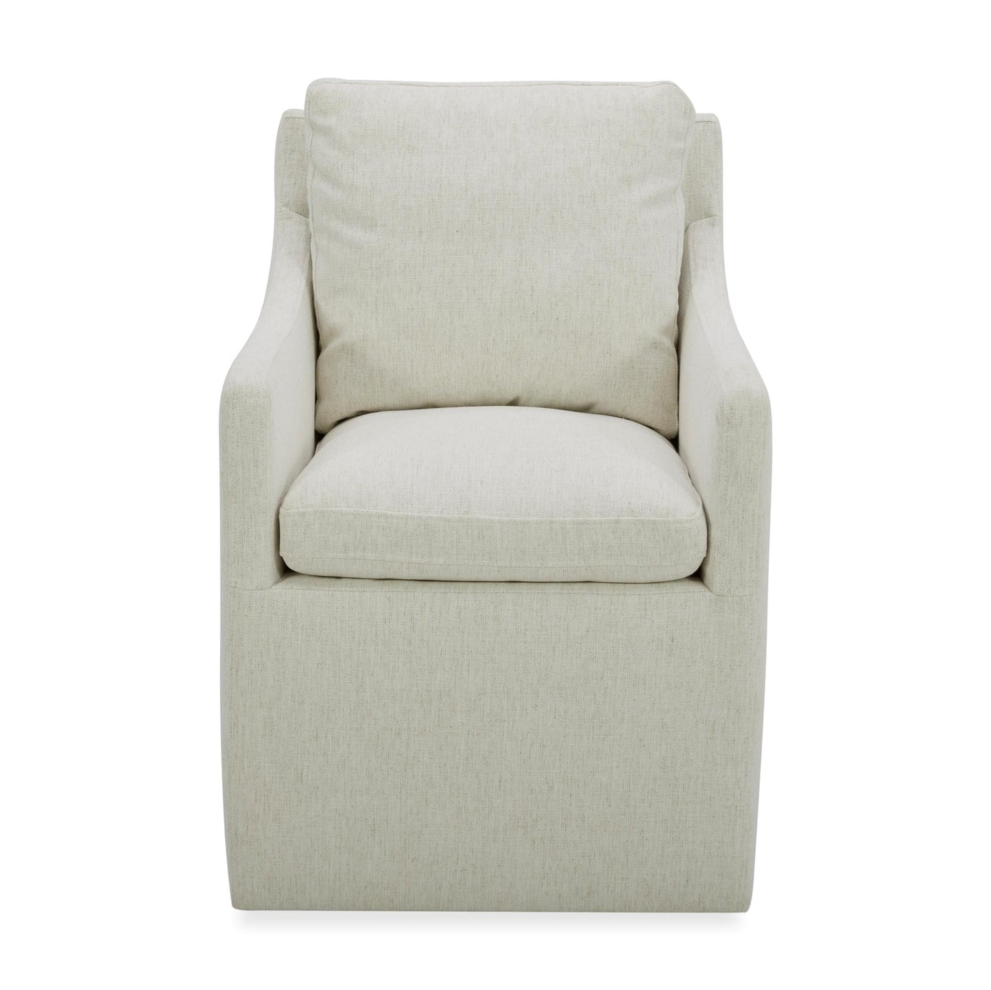 The Beverly Hills Arm Chair features a skirt fully upholstered in a Crypton performance fabric. With attached caster wheels, you can arrange this easily anywhere in your home.