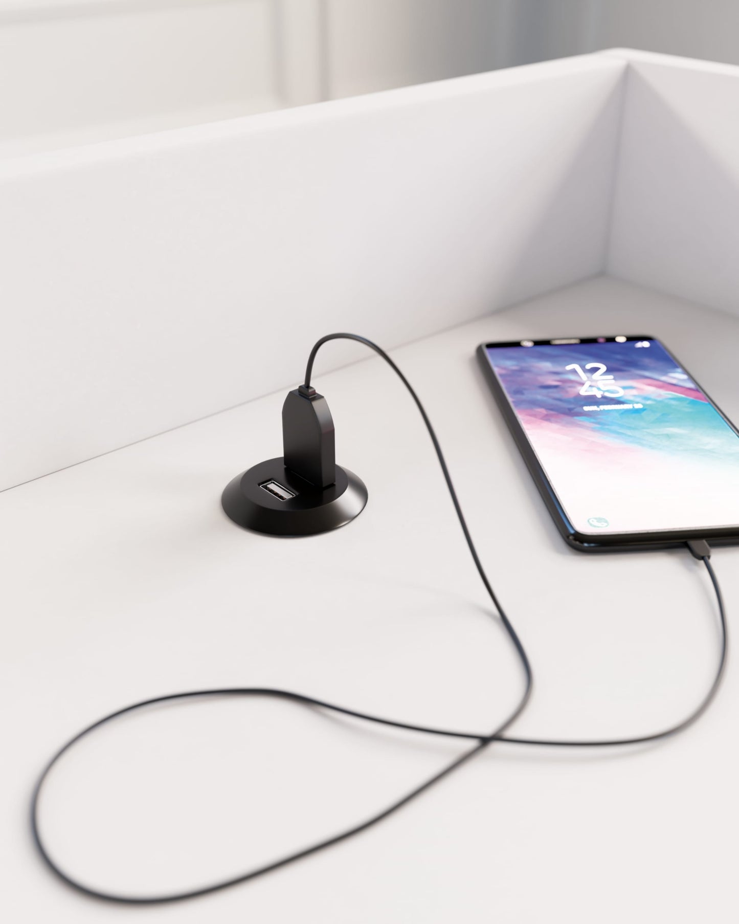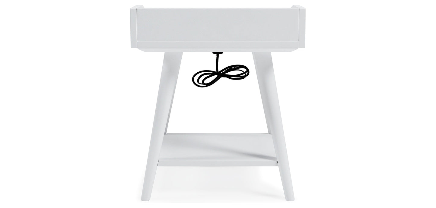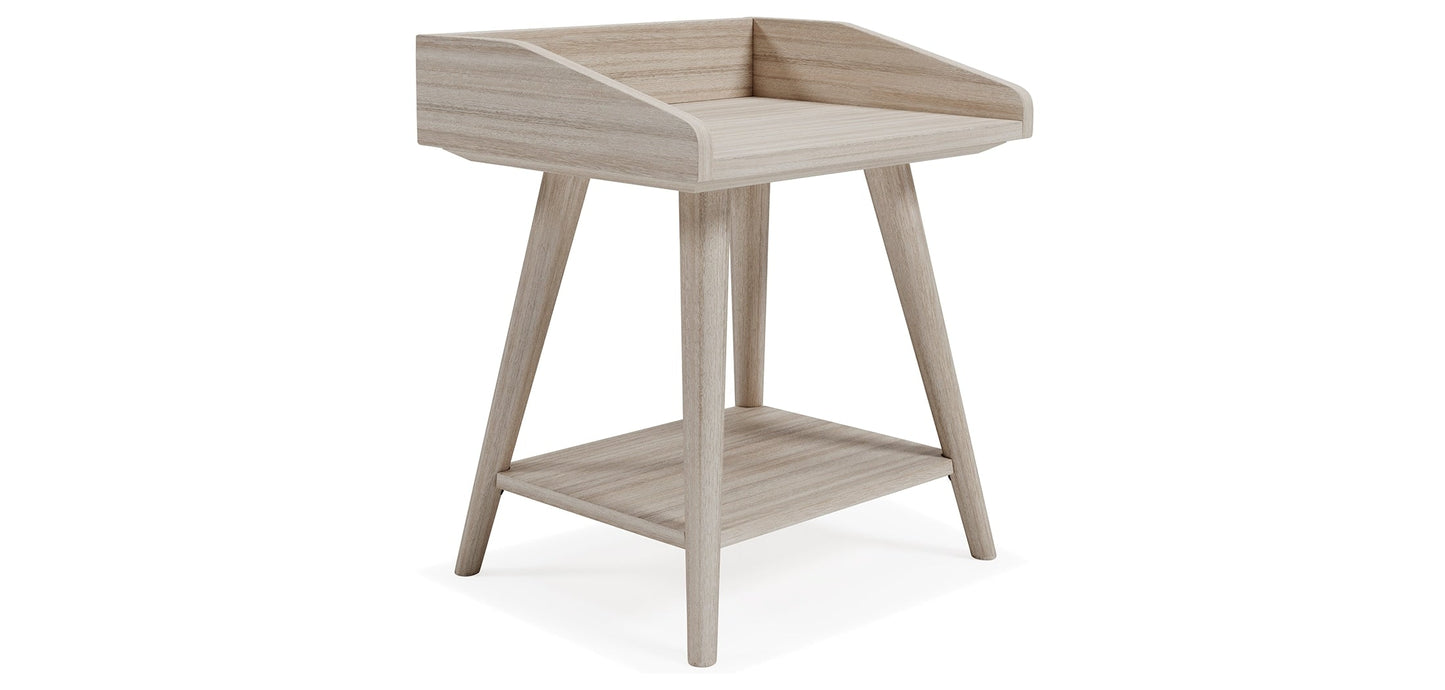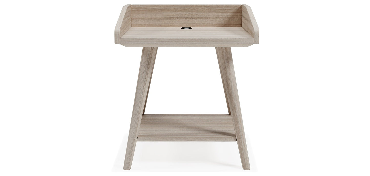 Display decor with simple style on this artful accent table. Constructed of wood, engineered wood and veneer in a light tan finish, it blends easily with your existing living room aesthetic. A gallery rail top, undermount shelf and dual USB chargers keep your life (and your look) simply sensational.