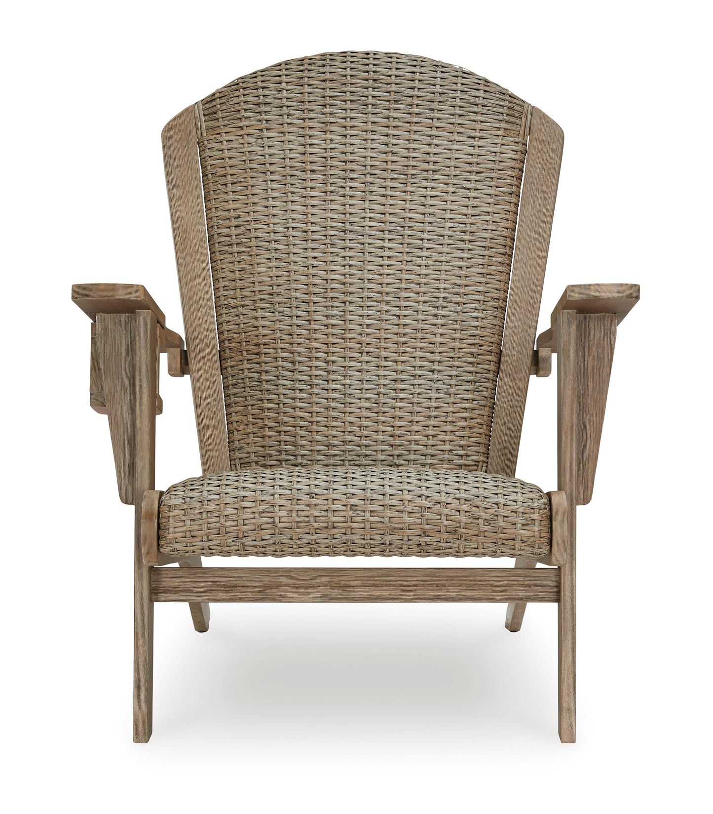 This Adirondack chair takes a classic design to new heights of relaxation. Comfortably padded and crafted with durable eucalyptus wood and handwoven resin wicker, this chair weathers the seasons beautifully with exceptional form and function.