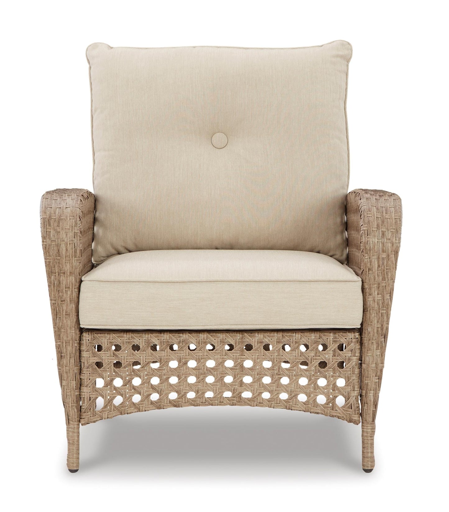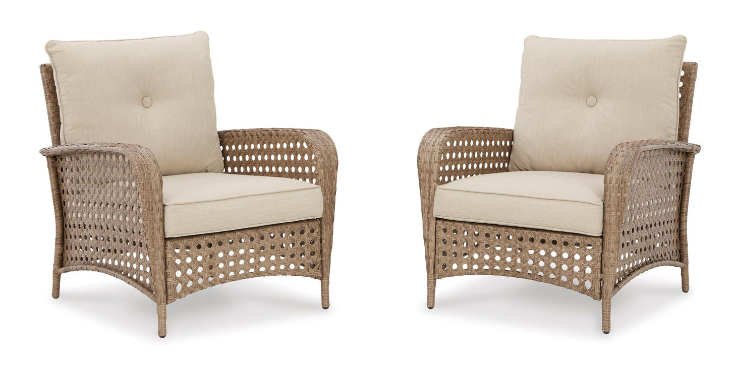 Bring a beach house look and feel to your outdoor living space with this cushioned lounge chair set. Made of driftwood resin wicker over a powder coated steel frame, it features beautifully neutral beige cushions made of high-performance Nuvella® fabric that is colorfast and easy to clean. With this cool and casual outdoor furniture set, every day feels like a day at the beach.
