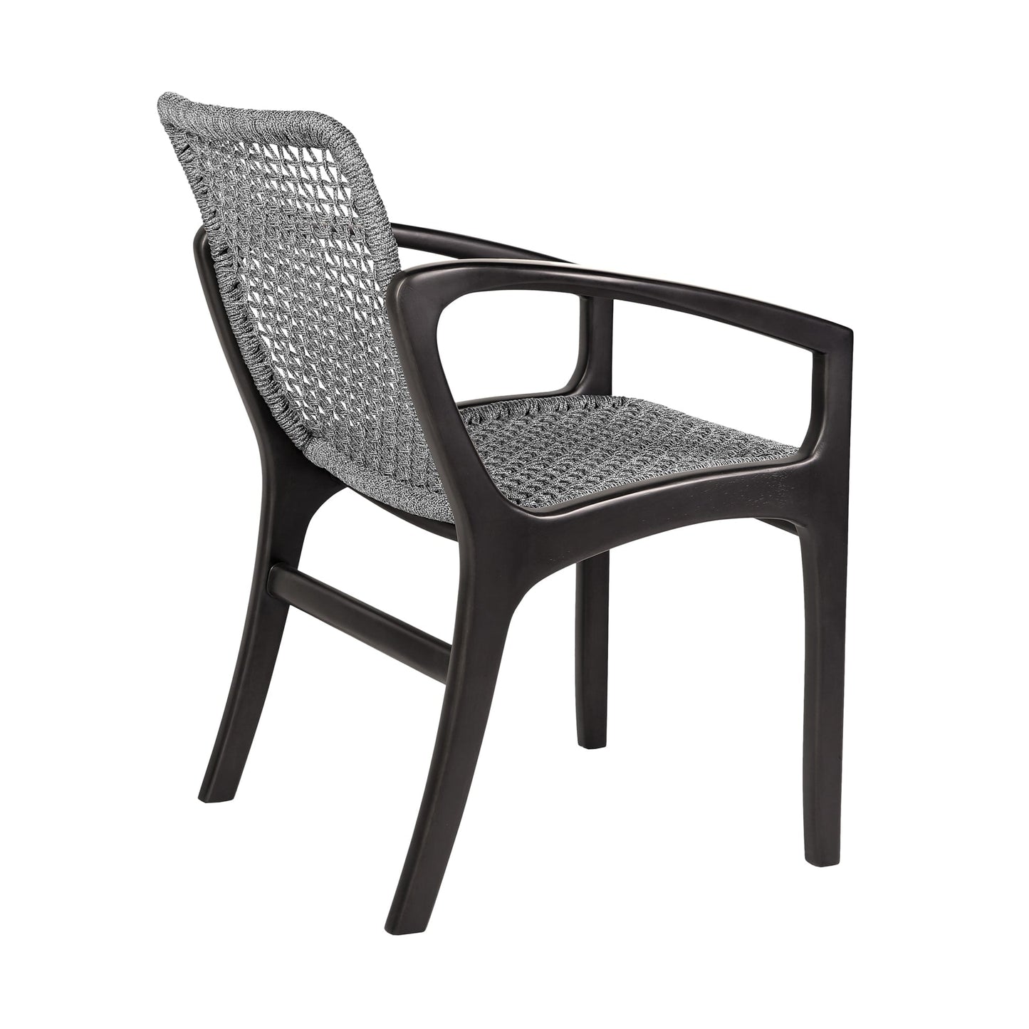 The stunning silhouette of the Brighton Outdoor Dining Chair is reminiscent of mid-century modern design and is constructed from durable materials that will last for many years to come. The Brighton patio chair is crafted from eucalyptus wood, steel, and rope. The eucalyptus arms and legs encapsulate a durable steel frame that is wrapped in resilient and weather resistant rope with an intricate weave. Eucalyptus wood is a smart choice for outdoor furniture as it’s exceptionally resistant to decay and rot. It naturally resists the influence of moisture because of its high oil content. Its durable enough to withstand the outdoor elements and its style transcends traditional patio furniture and it can easily transition indoors as a dining or accent chair. The Brighton armchair showcases lively grains of wood, the arms and legs seamlessly flow to deliver a sculptural aesthetic.