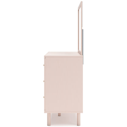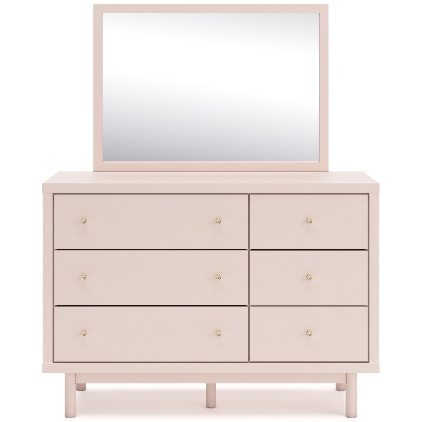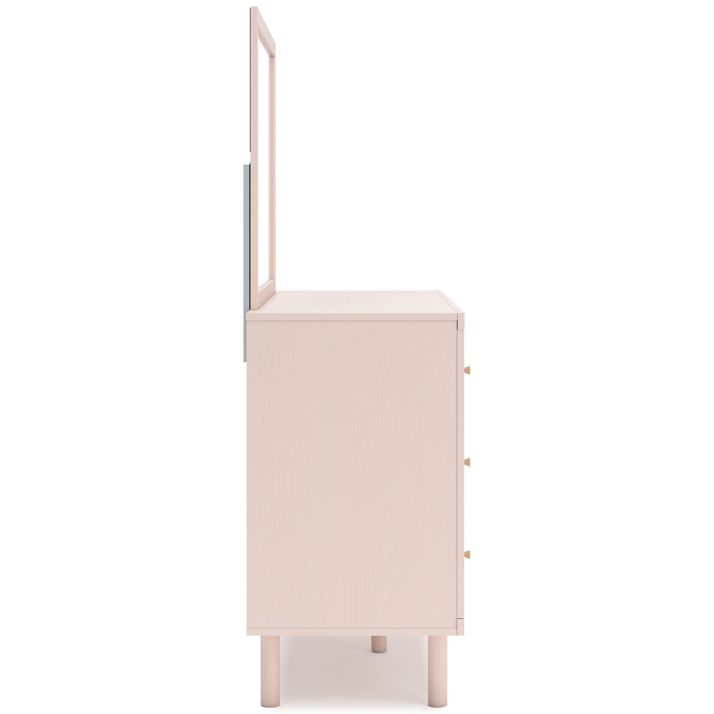 Pretty in pink. This dresser with mirror keeps the spirit of your home’s modern aesthetic while suiting all your young one’s needs. Its subtle blush finish brings a playful, charming vibe to organizing clothes and other essentials. Made for her and styled for you, it’s a lovely addition to a beautifully chic child’s bedroom.