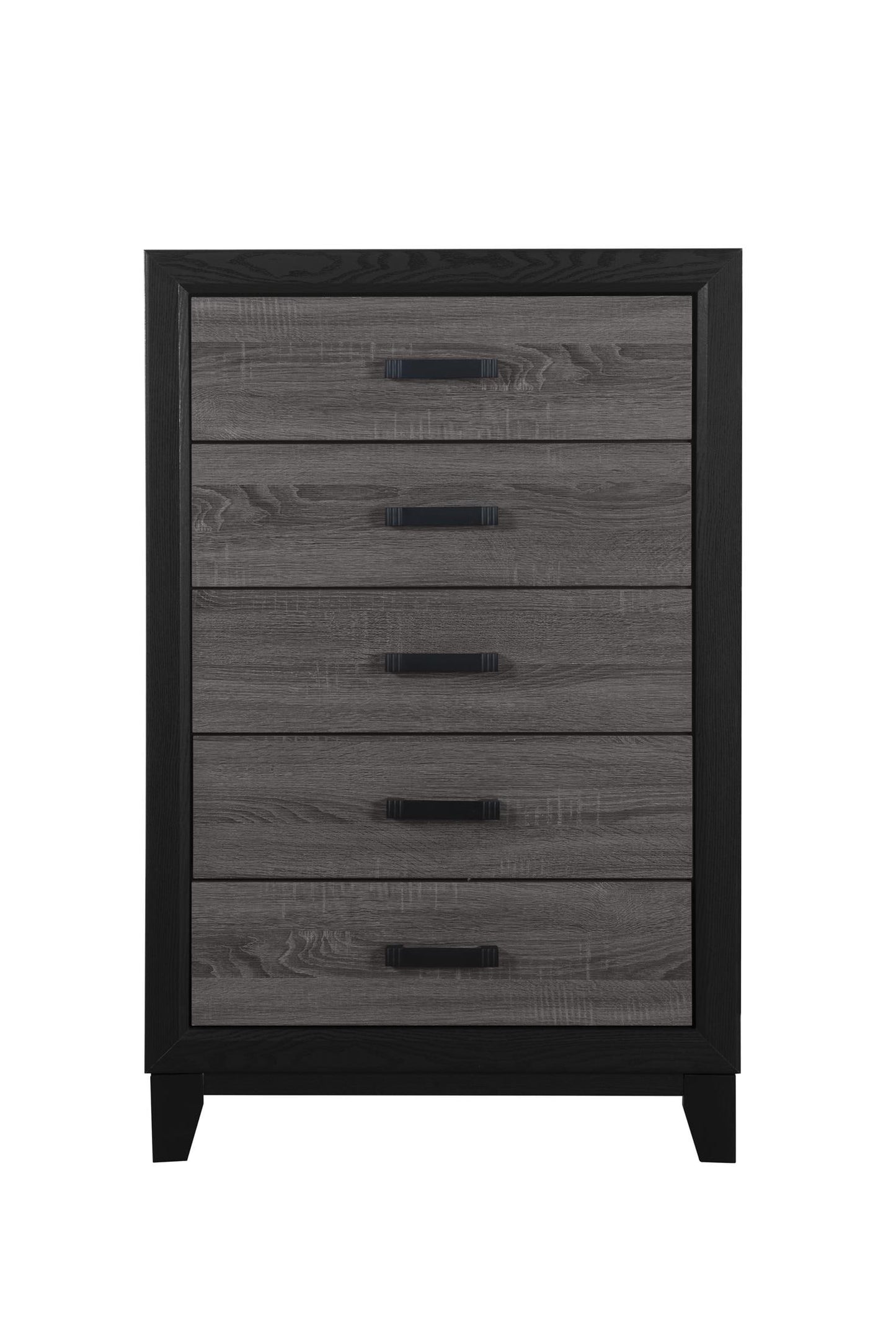 WIth its urban farmhouse design, the best of farmhouse and urban living combine to create an upscaled farmhouse appearance. The case pieces are black with rustic grey wood inlay,. In addition to the two-tone design, the metal hardware completes the mixed media look and adds a modern flair.