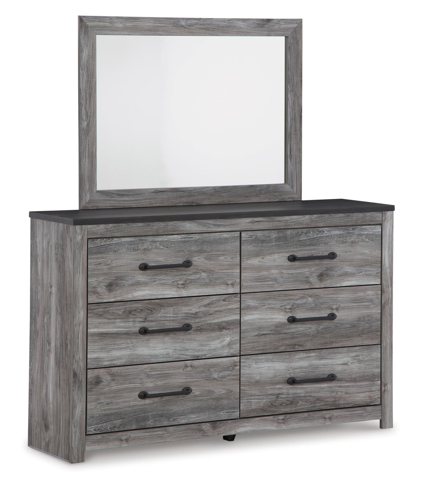 Alluring smoky gray hues create an ambiance that just feels right. This 6-drawer dresser and mirror set has a charming wood-like appeal enriched by a two-tone, textured look. Light neutral shades contrasted by a dark charcoal finish bring a refined yet relaxed feel to contemporary decor and a sense of serenity to your space.