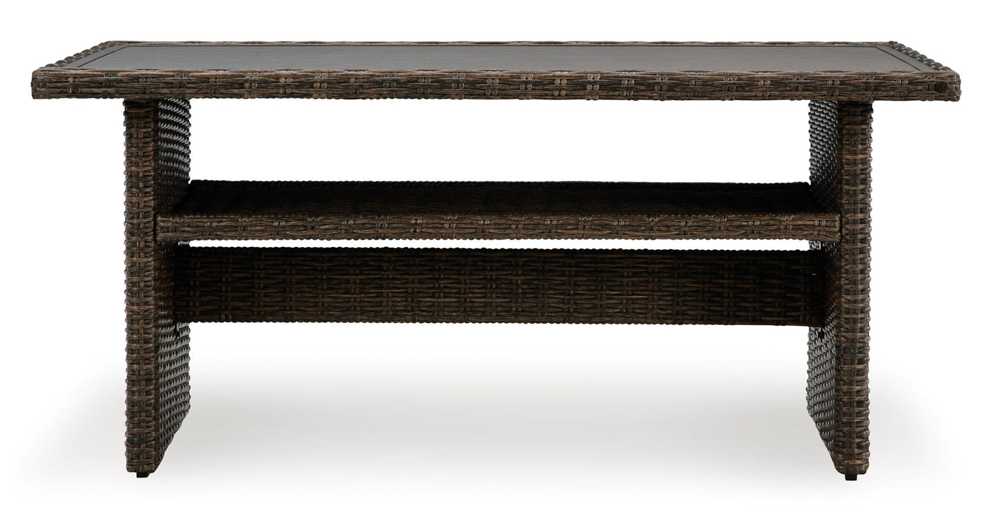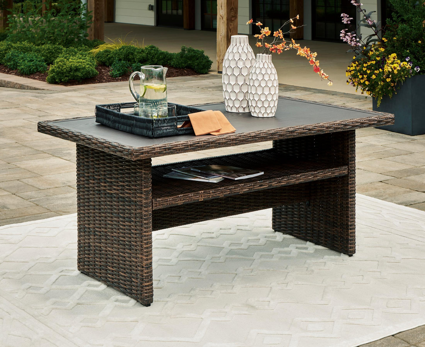 Relax. Refresh. Refine your outdoor oasis. This multi-use table masters high style with beautiful simplicity. A handy shelf for storage, warmly neutral hues and all-weather durability invite everyday use. From chic gatherings with guests to dinner by the pool with the kids, this sleek table makes outdoor living all the more enticing.