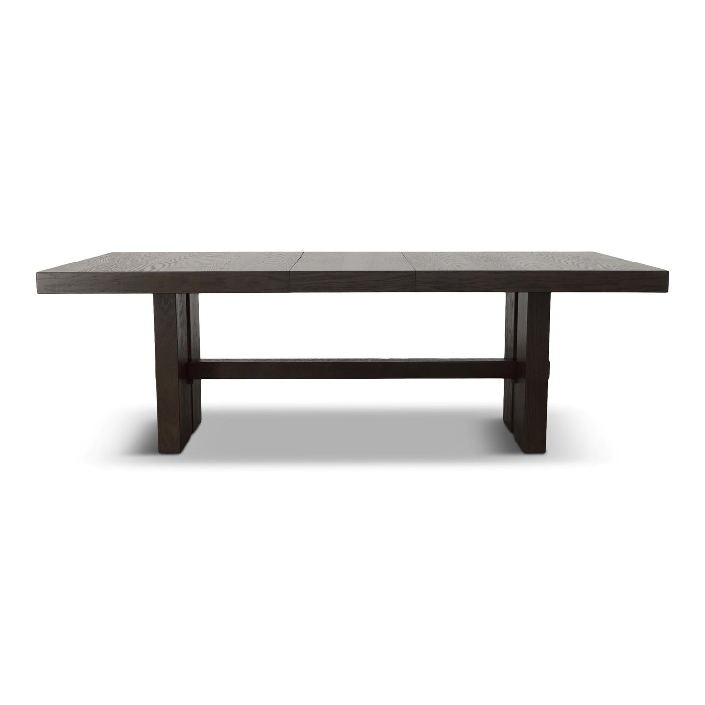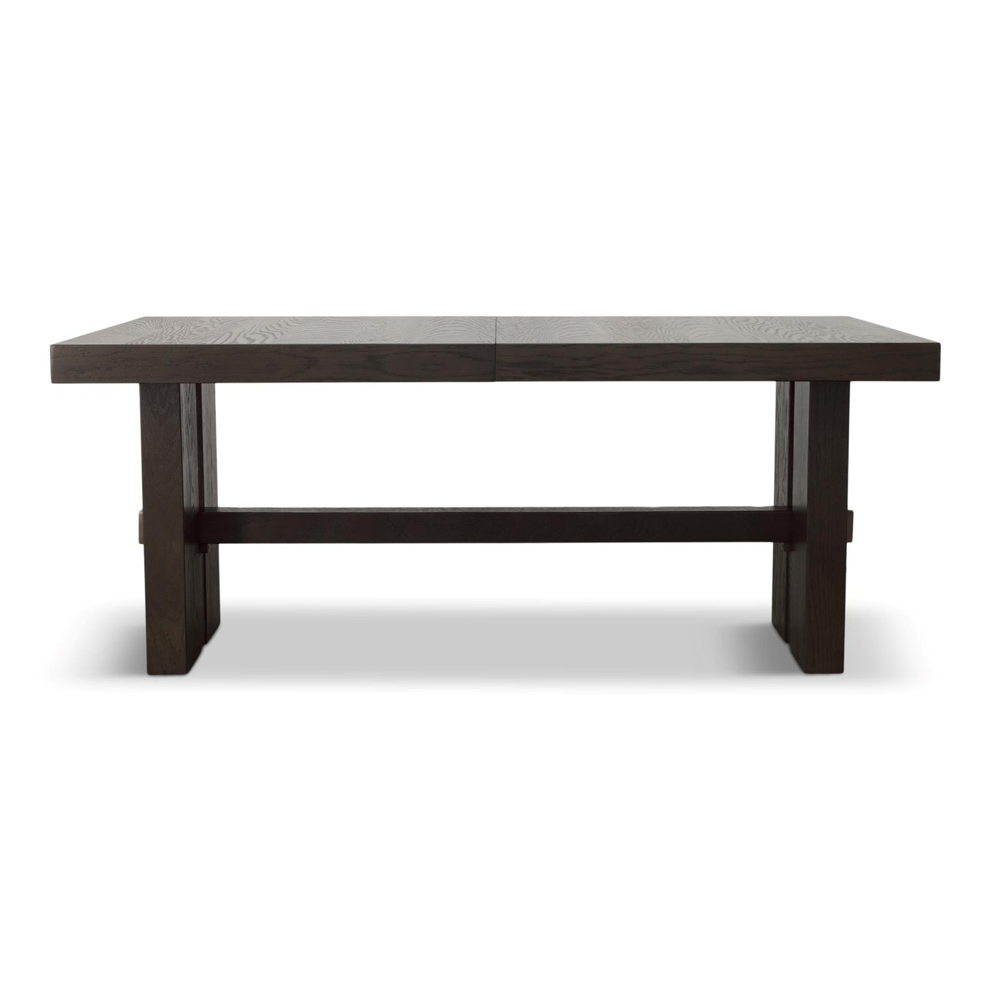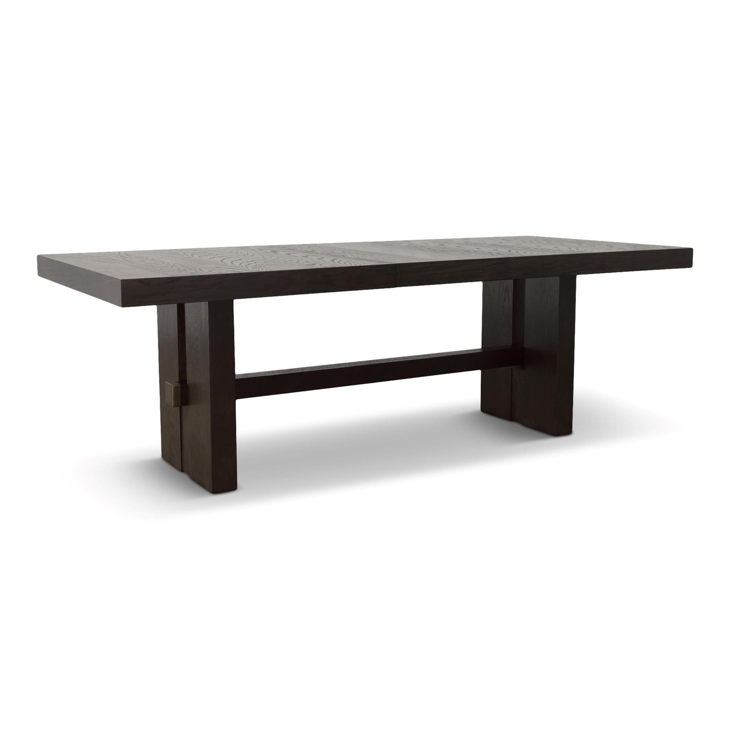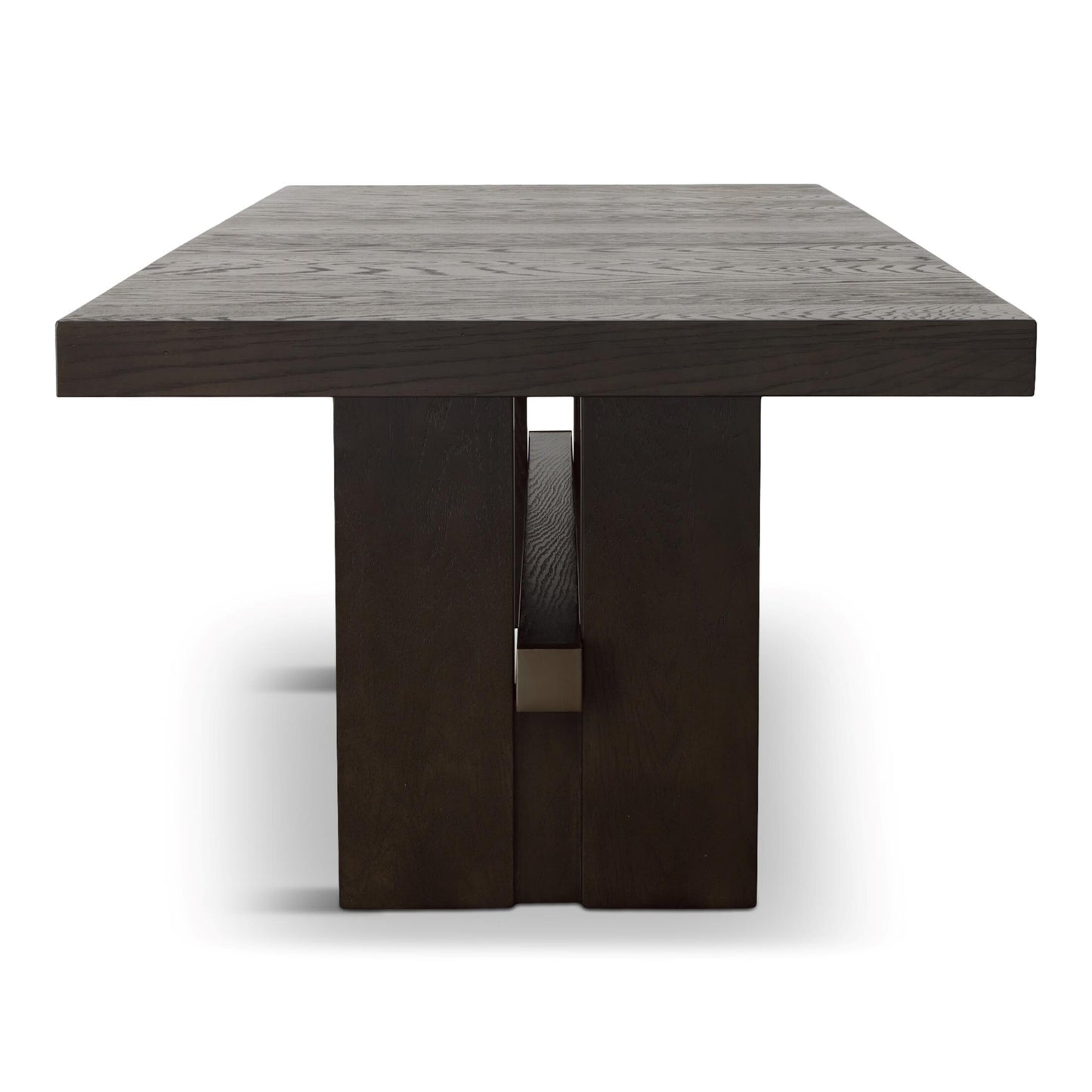 Dressed to thrill, this simply stunning dining table offers a high-design look at a down-to-earth price. Ultra sleek lines are accentuated with a dark waxy brown oak-tone finish that’s so easy on the eyes. Clean-lined and modern, the double pedestal base and thick edge tabletop showcase quality craftsmanship and attention to detail. Whether you're hosting family meals or holiday entertaining, it has a timeless look that’s made to last.
