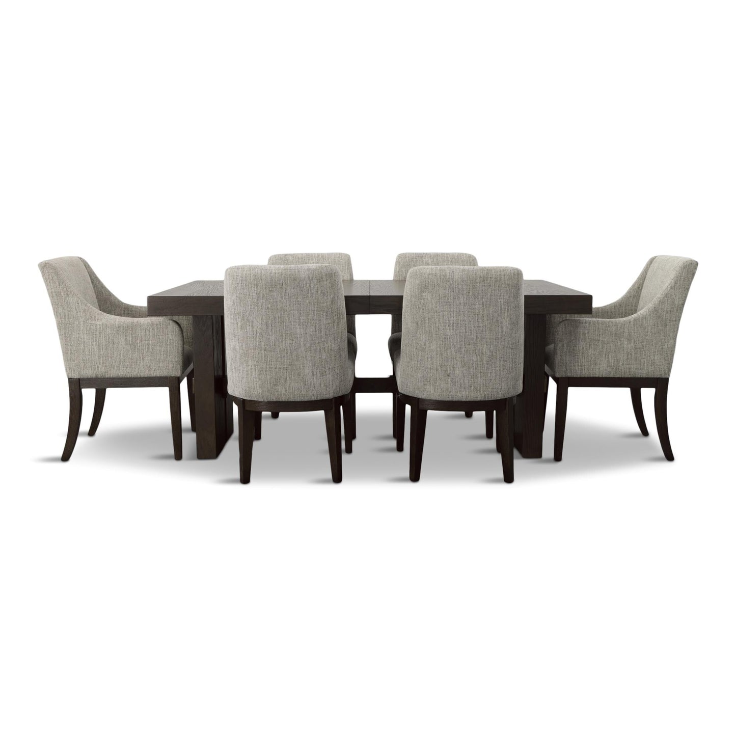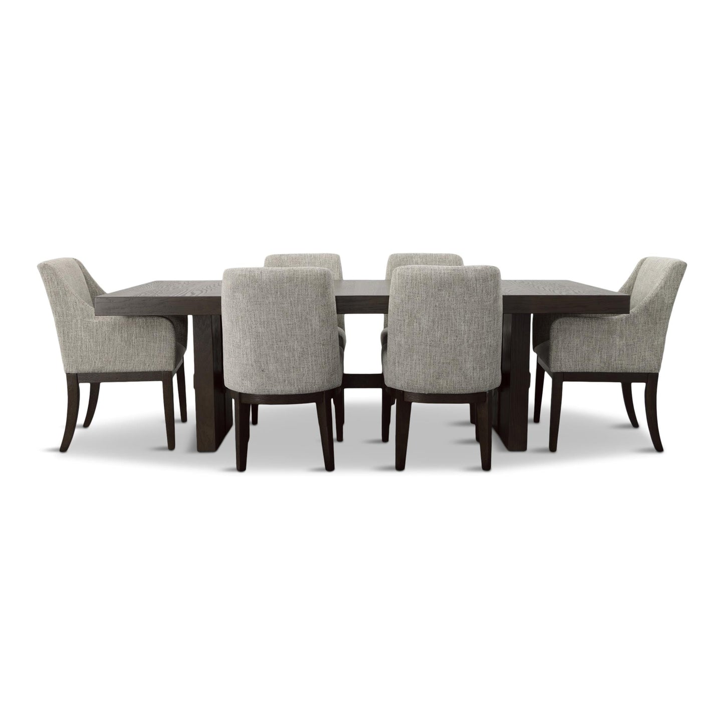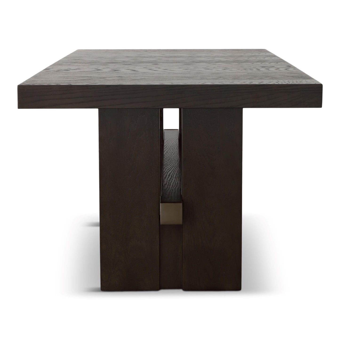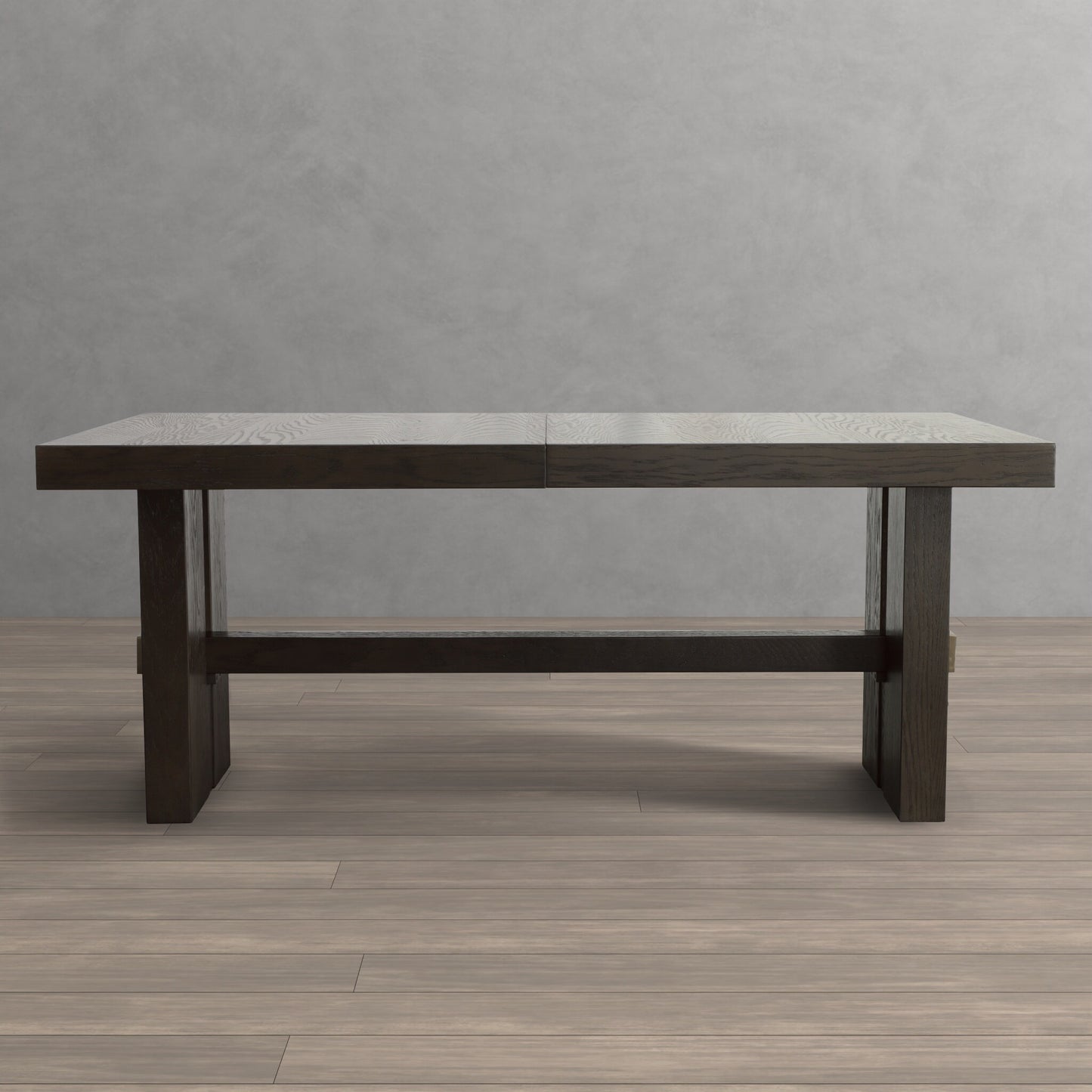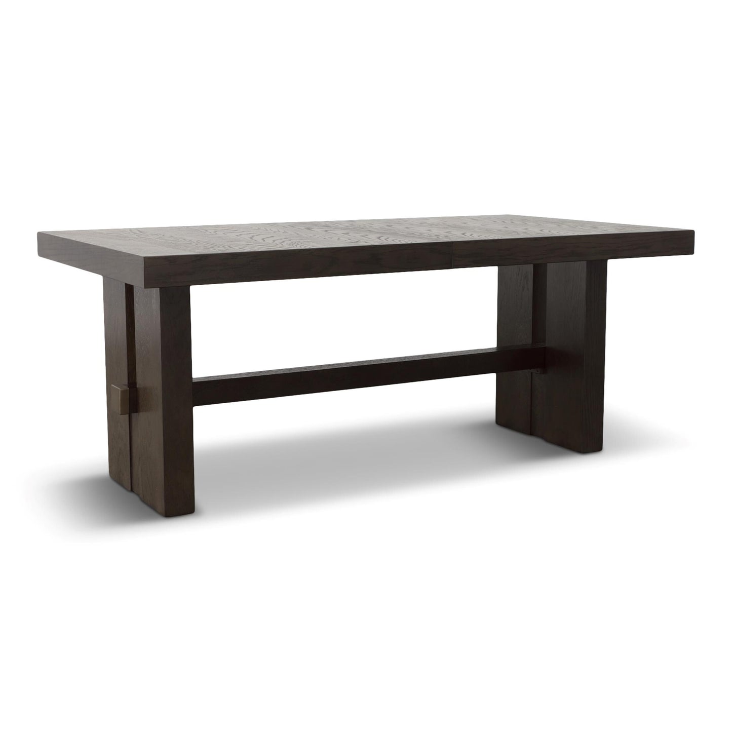 Dressed to thrill, this simply stunning dining table offers a high-design look at a down-to-earth price. Ultra sleek lines are accentuated with a dark waxy brown oak-tone finish that’s so easy on the eyes. Clean-lined and modern, the double pedestal base and thick edge tabletop showcase quality craftsmanship and attention to detail. Whether you're hosting family meals or holiday entertaining, it has a timeless look that’s made to last.