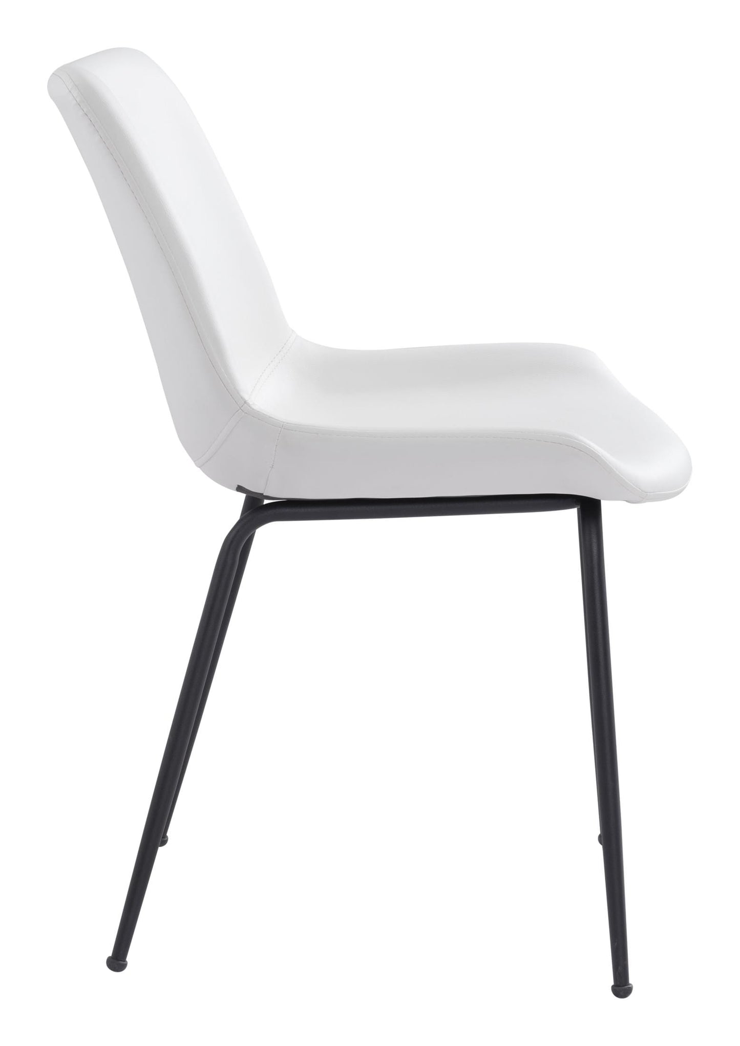 The Bryon Chair has mid century modern urban lines and looks great in any space. With a heavy duty vinyl covering and a sturdy steel frame, this chair fits in any dining room, home office, or even as a bedroom accent chair. The legs are finished in a matte black coating that is durable for hospitality use.