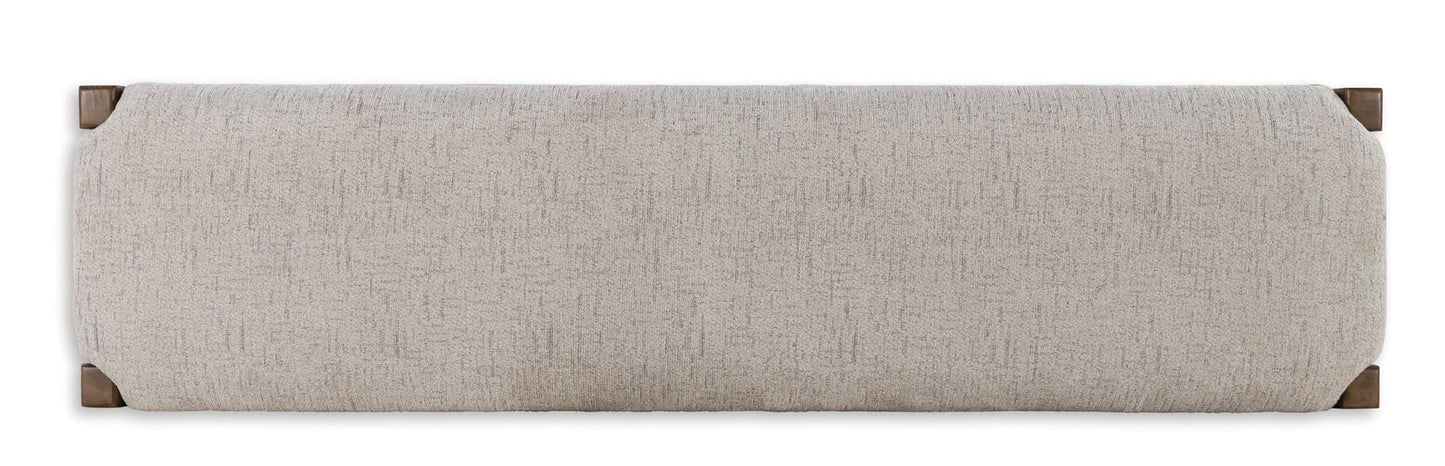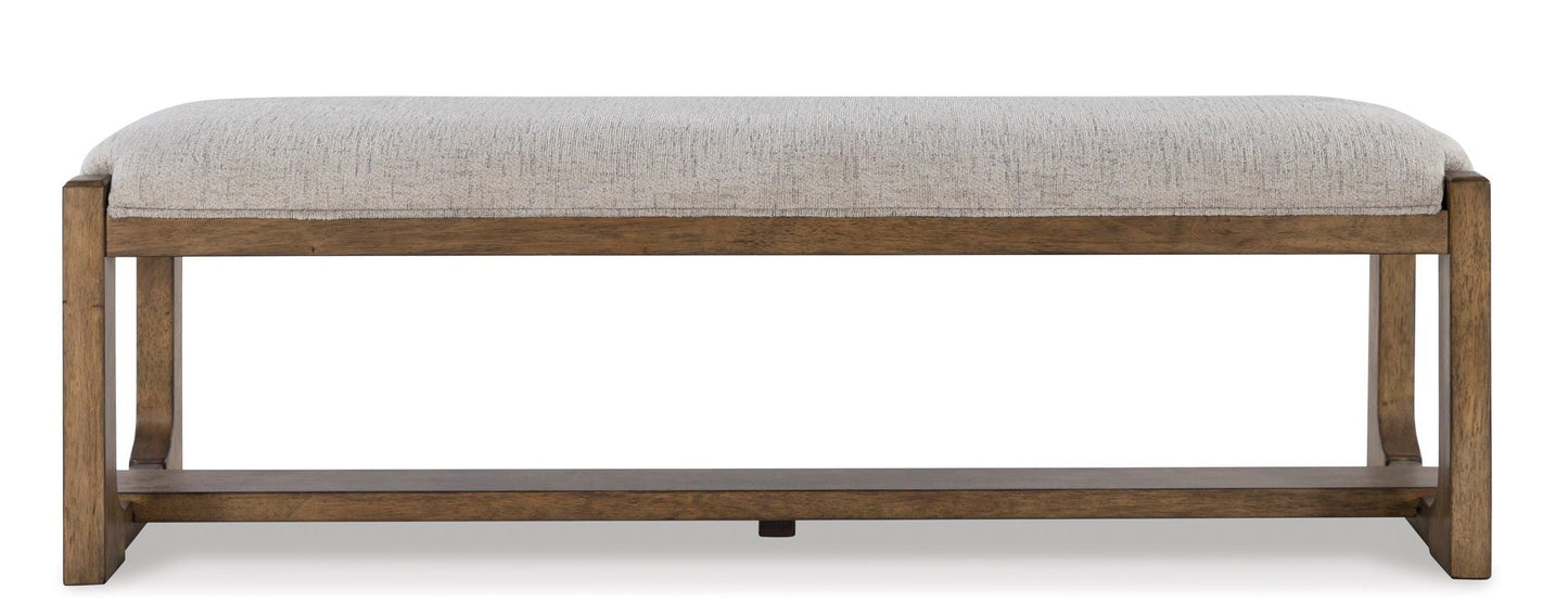 This dining bench sits comfortably at the intersection of modern lodge and farmhouse aesthetics. Your warm and welcoming disposition is reflected in its charming architectural elements and neutral textural fabric. Even with its poise, the bench remains practical. Its cushioned seat invites you to linger longer at the table, defining your dining room with reliable function and style.