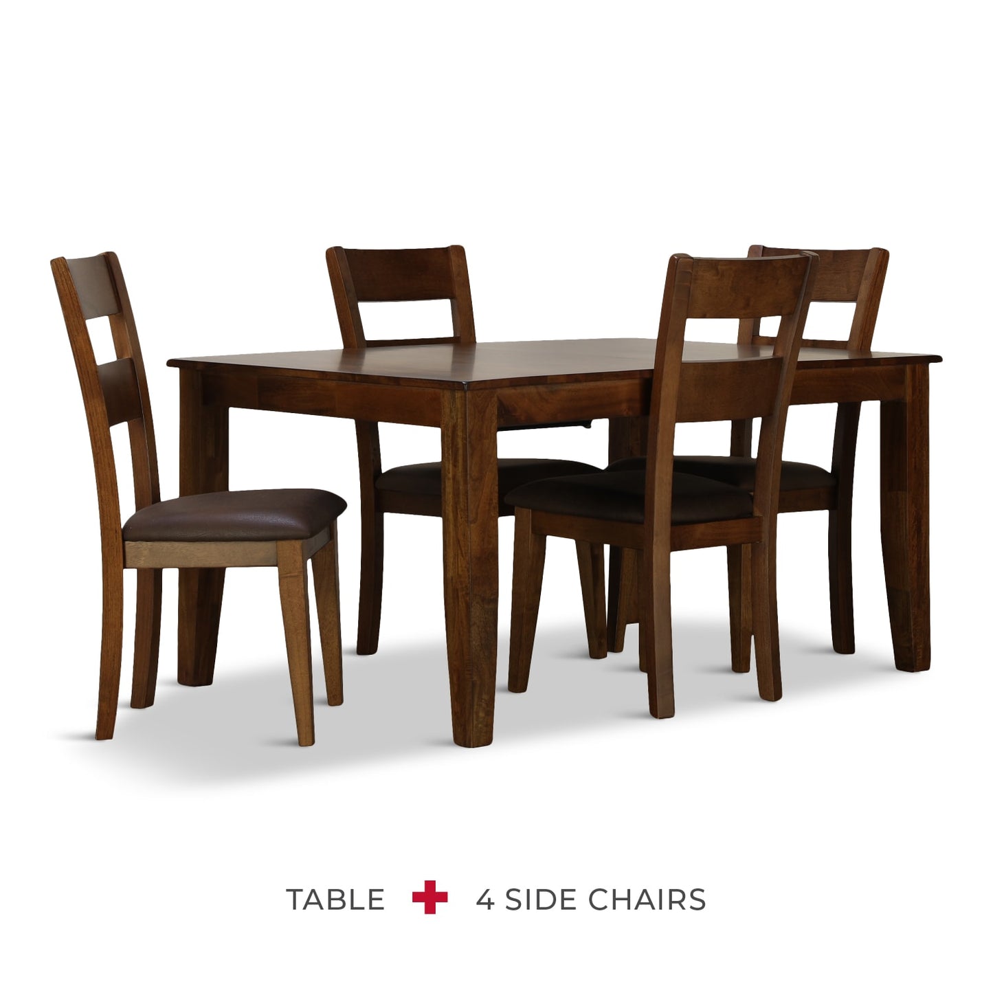 Have an appetite for clean-lined design, but with warmth and rustic character? Satisfaction is served with the Callie dining set. We love how its gently distressed, burnished finish and plank-style tabletop incorporate depth and character, while the padded seats on the dining chairs supply an endless amount of comfort. Made of mango wood and veneer, this dining set is sure to withstand the tests of time.