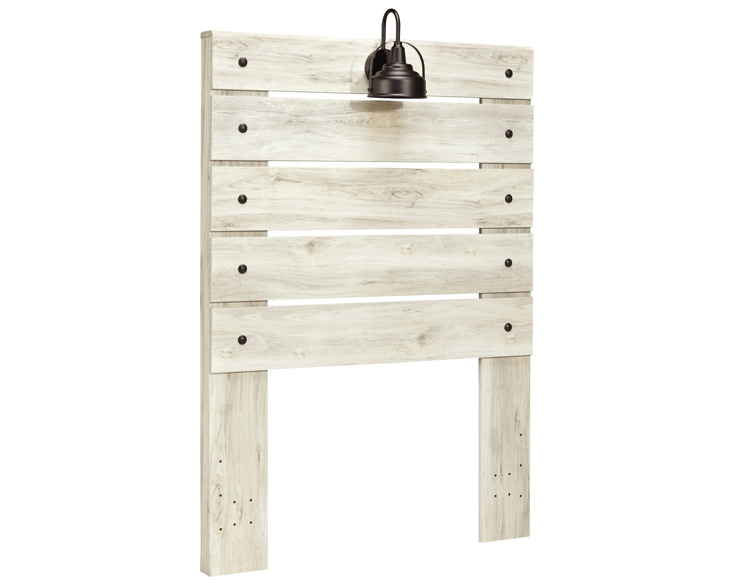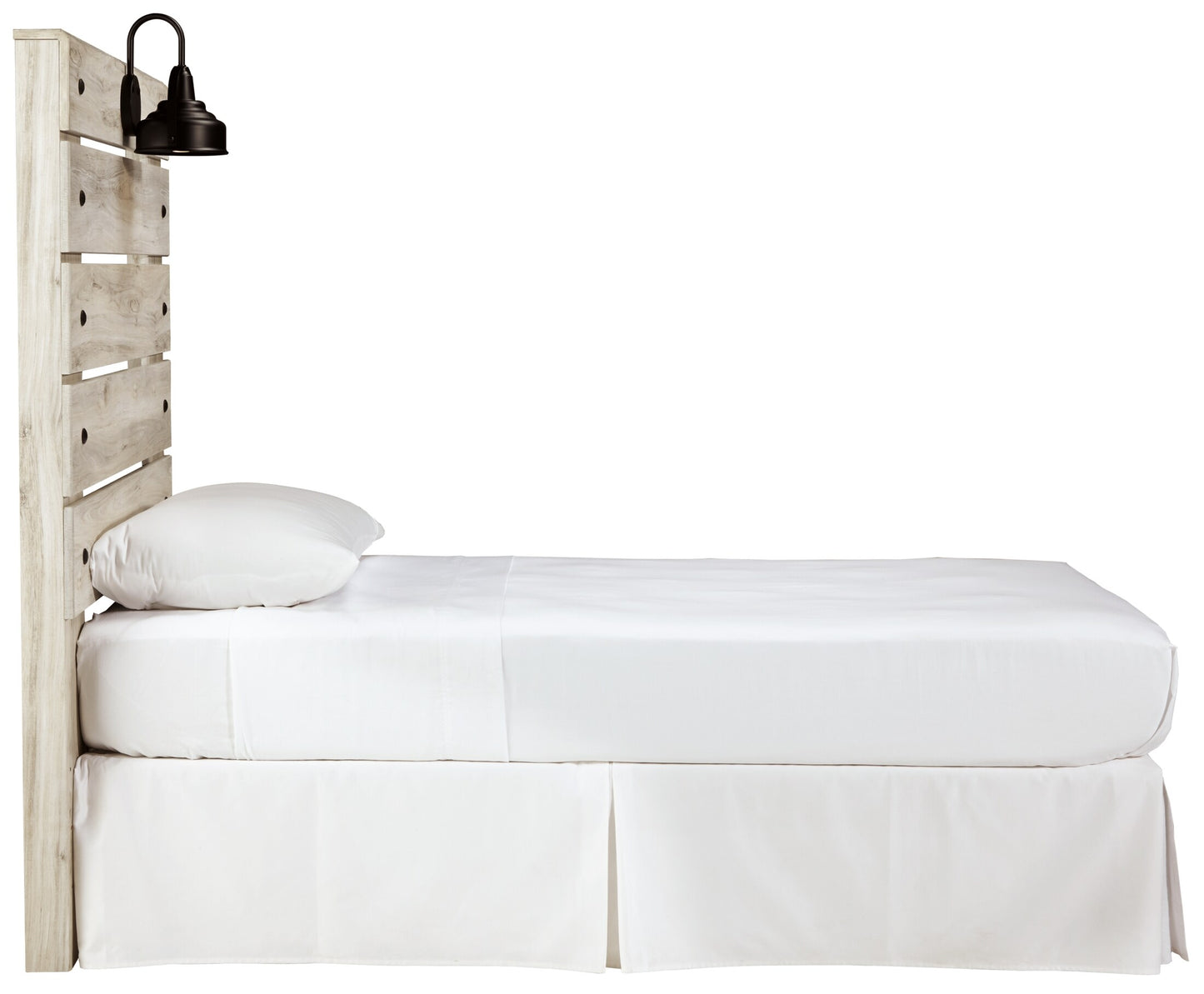 What a delightful take on rustic industrial style. Whether modern loft or modern farmhouse, this twin panel headboard makes itself at home. The wispy whitewash palette enhances without covering the grain for that weathered look you crave. Love to read in bed? You're sure to find the retro-chic light sconce and USB plug-ins on the open-slat style headboard such a bright idea.
