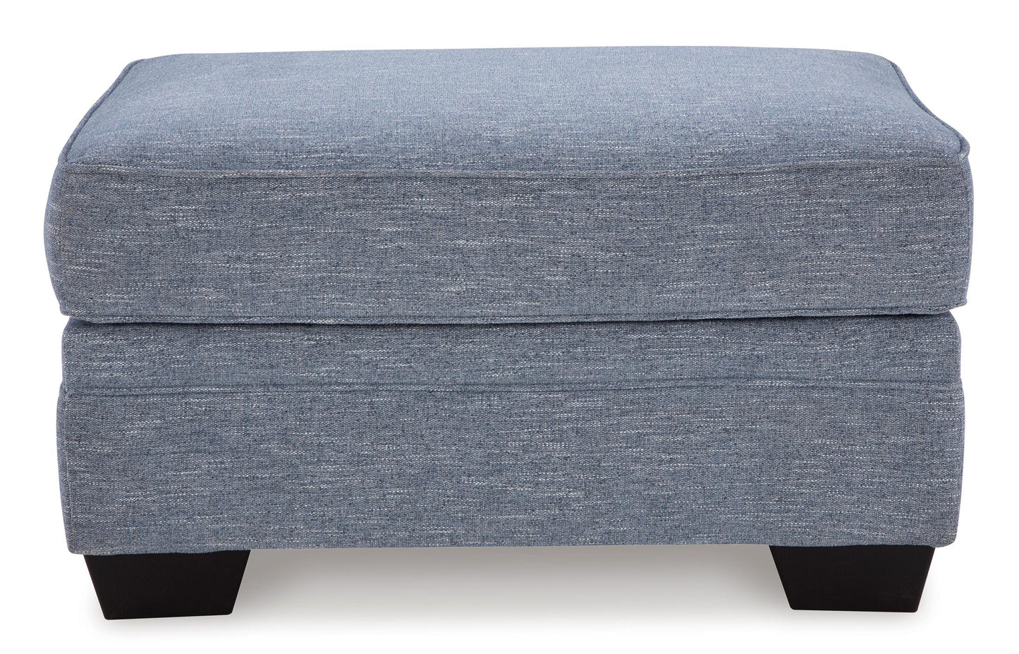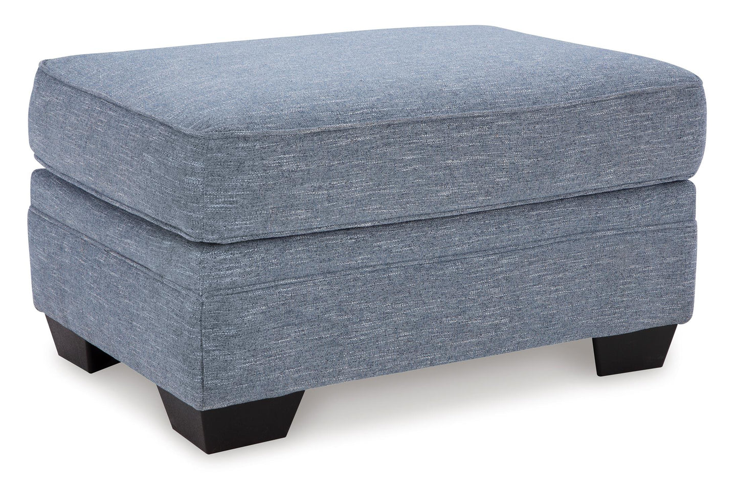 This ottoman is defined by comfort, convenience and classic style. Soft to the touch and stain-resistant, its family-friendly Next-Gen Nuvella™ fabric is easy to maintain. And you'll love the universal appeal of its denim-inspired hue. The perfect companion to your chair or sofa, the ottoman is a simply chic approach to everyday relaxation.
