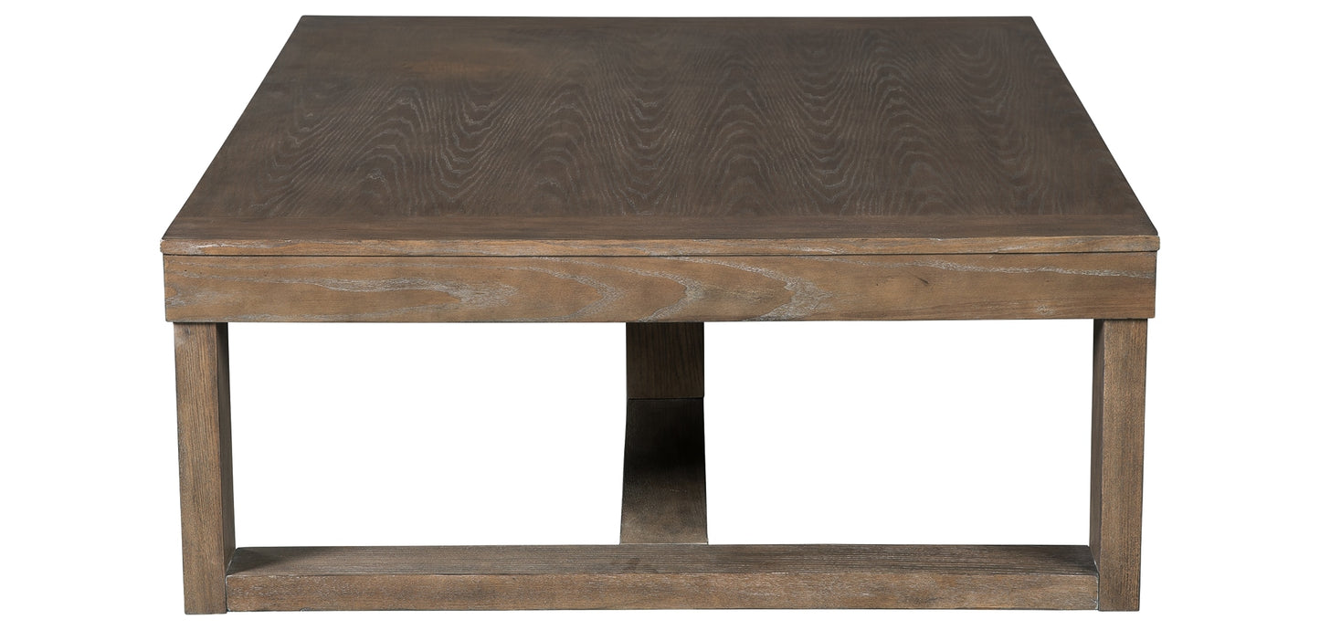 Oversized yet far from overdone, the Cariton coffee table masters the art of simplicity. Bold, blocky profile is enriched with plank-effect styling and a textured grayish brown finish for a look that’s cool and contemporary and a vibe that’s warm and inviting. Its generous scale makes it a natural complement for spacious sectionals.