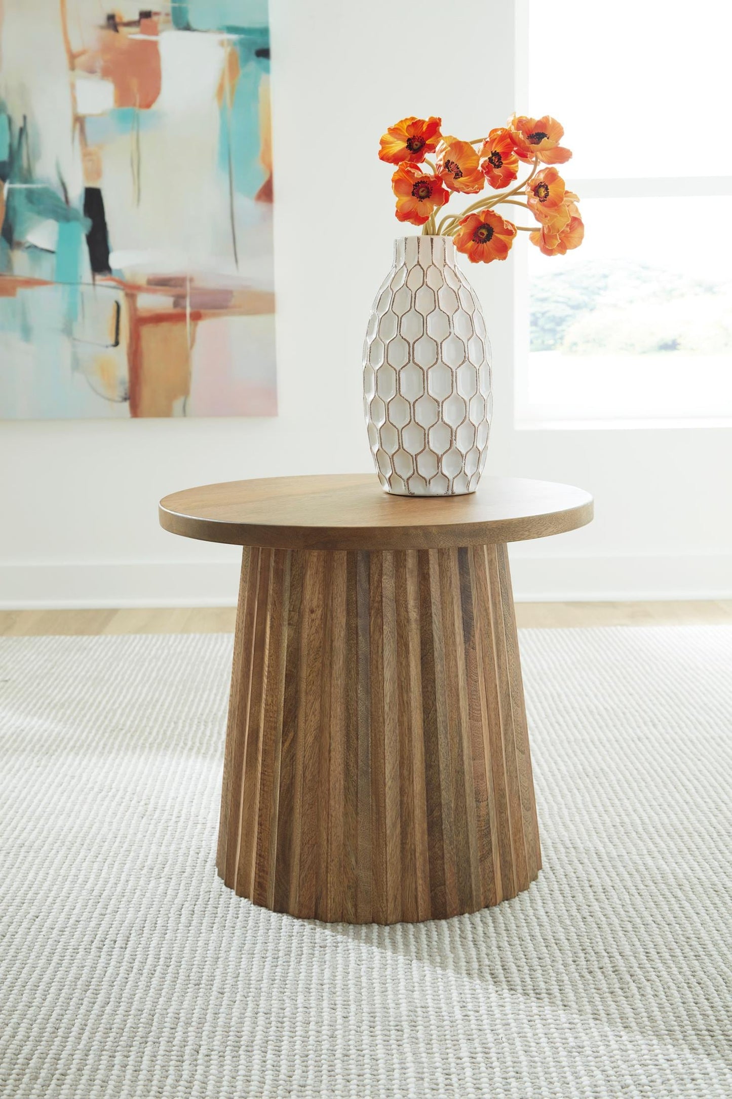 Show off your trend-right sensibilities with this contemporary accent table. Designed for the modern tastemaker, the solid wood piece wows with a fluted base. This organic beauty can be used on its own or grouped with other pieces in the collection. How’s that for form and function?