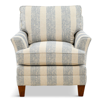A contemporized version of a classic silhouette, the Lillian chair features a unique arm style that sets back on the frame. The arms are angled with a lower elbow, resulting in a hand position that is slightly higher than most styles, giving it a contemporary flair and outstanding comfort. With a narrow front rail, modified pencil-style legs and a generously stuffed bench seat, the Sacramento takes a classic style and updates it in a clearly current way.