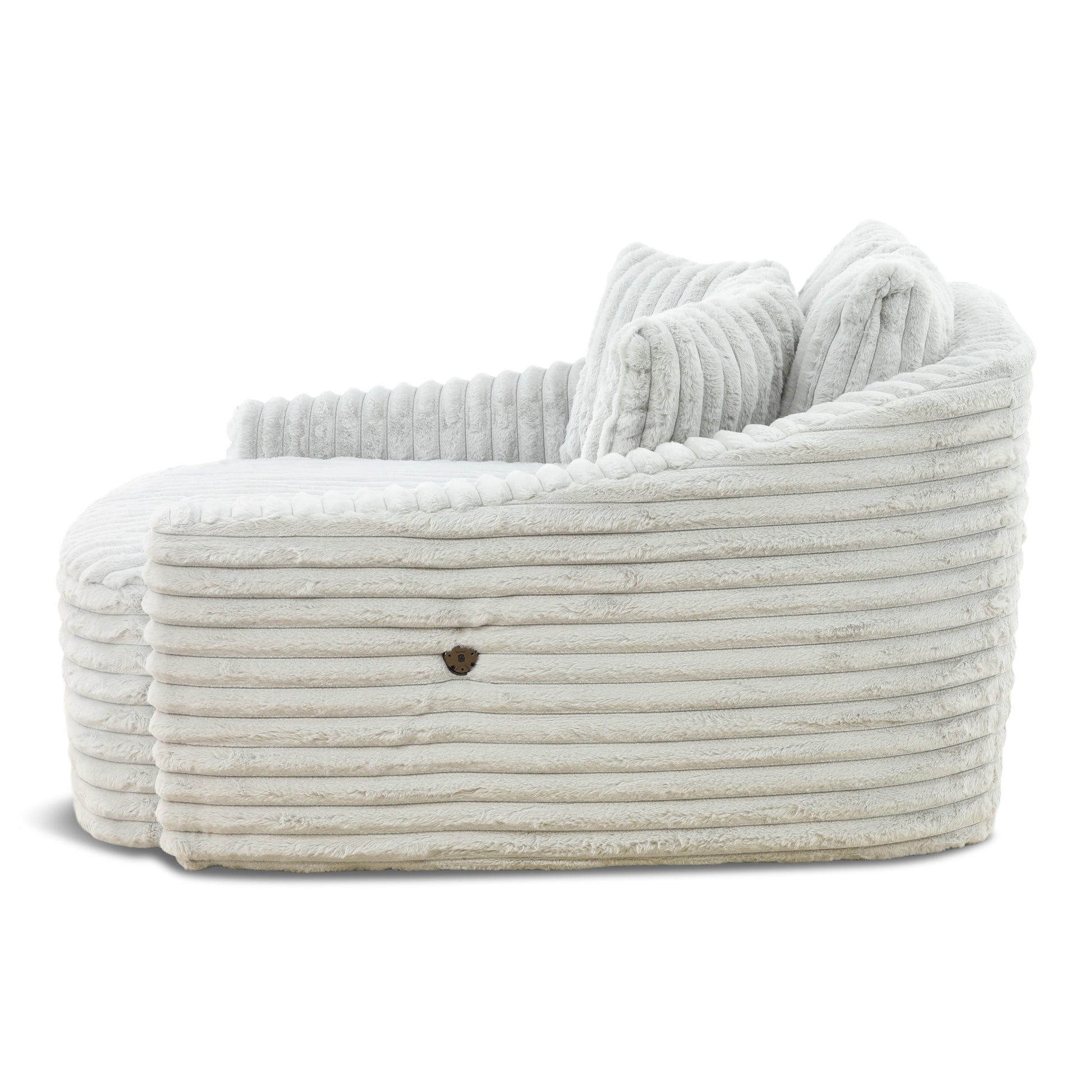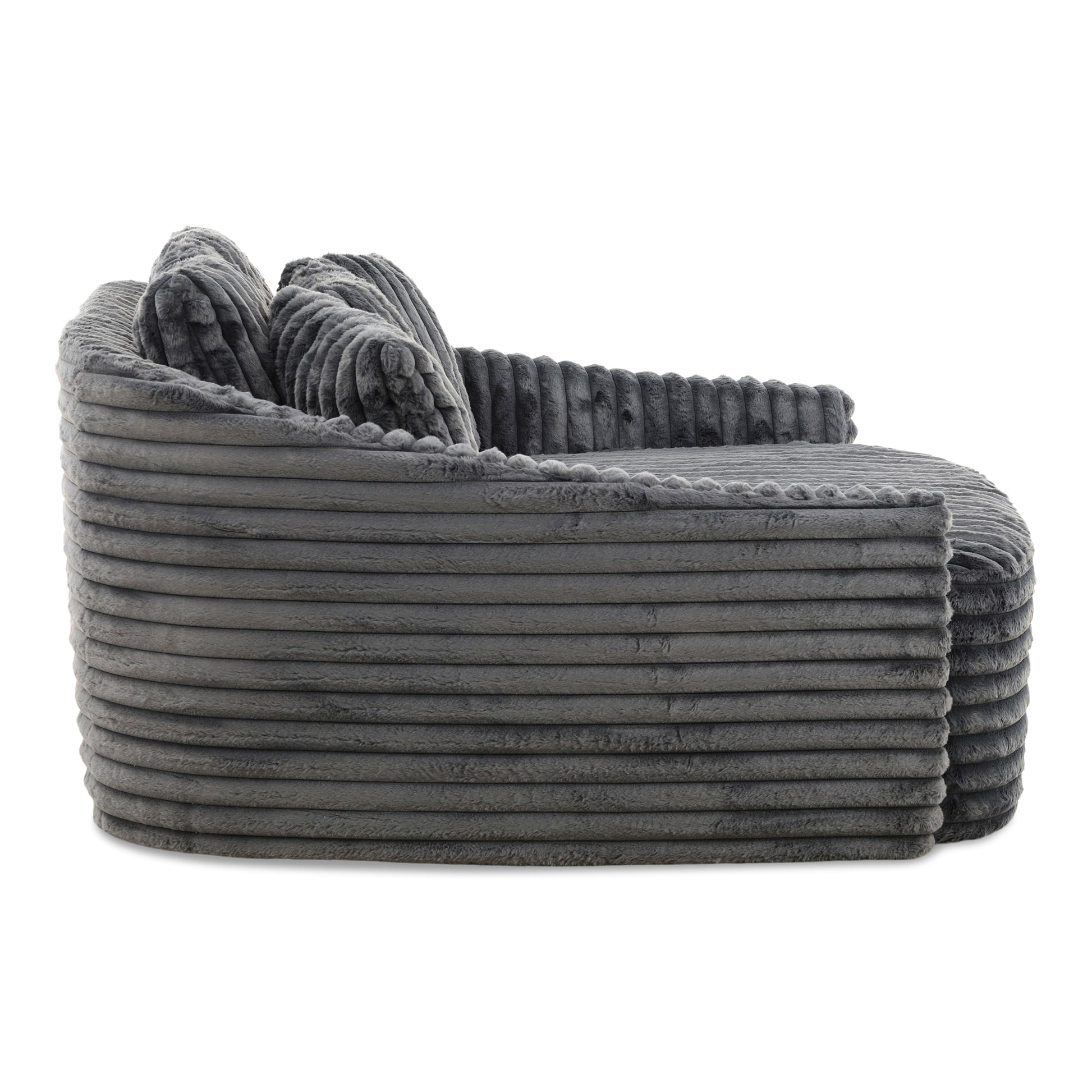 Experience lounging at its most luxurious on our Presley Chaise, which boasts generously oversized proportions and soft, corduroy upholstery. Whether you want to unwind alone or snuggle up to someone special in your living room or bedroom; the rounded shape with its curved front and round arms make this a standout silhouette.