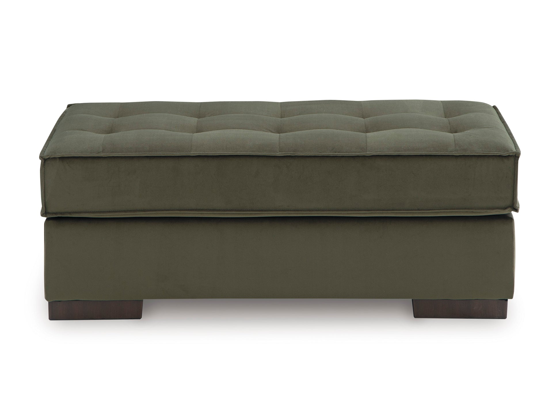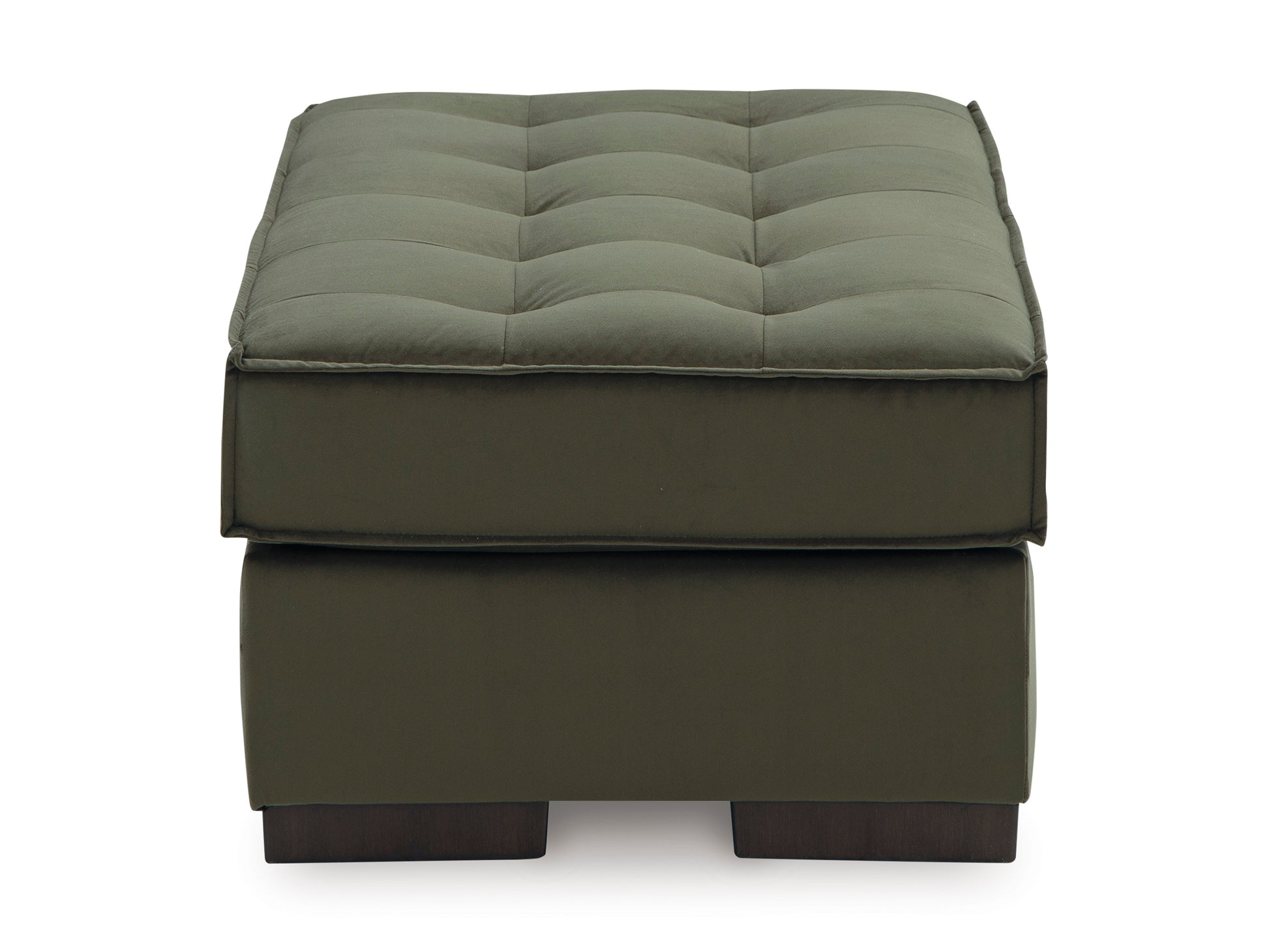 This sleek oversized accent ottoman offers a highly contemporary look with plenty of space to spread out. Dramatic tufted detailing and luxurious upholstery in a rich olive color create a sophisticated atmosphere. This ottoman is perfect for those who love to entertain, or simply relax, in uptown style and comfort.