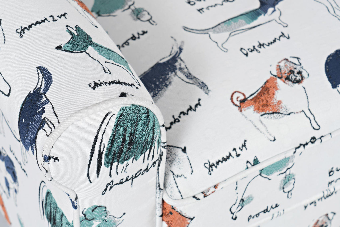 Fun abounds with the Chester chair. The adorable puppy fabric, with pops of beautiful color, is the must have stylish addition to your space.