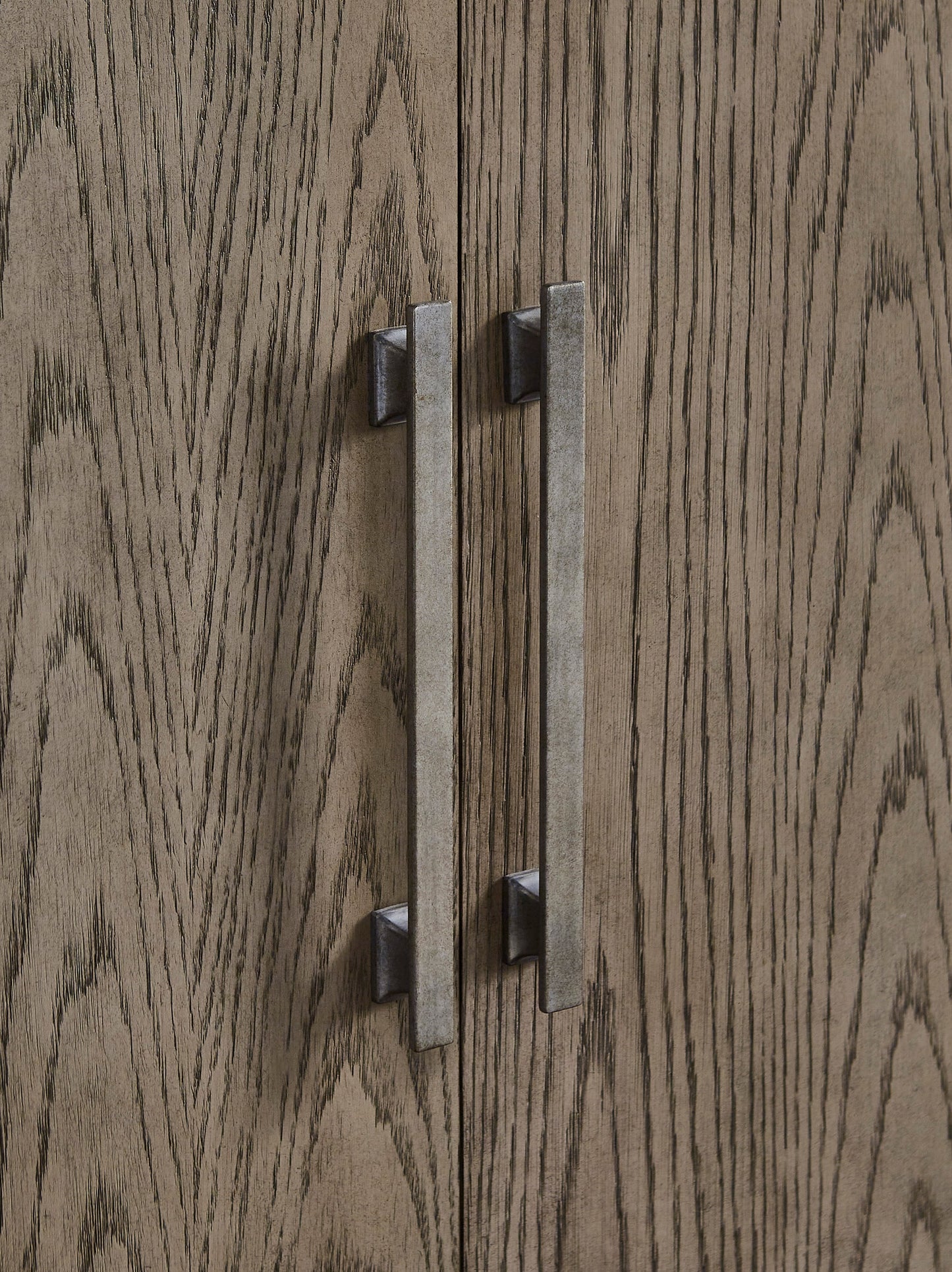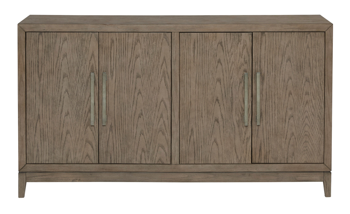 You want your dining room to reflect your refined sensibilities while remaining forward-thinking in design. The simple silhouette of this dining server opens the door to a dining room with the curated look and subtle flair you desire. The piece's elegant waxy gray finish gets an added touch of luxury with striking metal bar pulls in a light pewter tone. Two double door cabinets, each with an adjustable shelf, allow you to store in streamlined style.