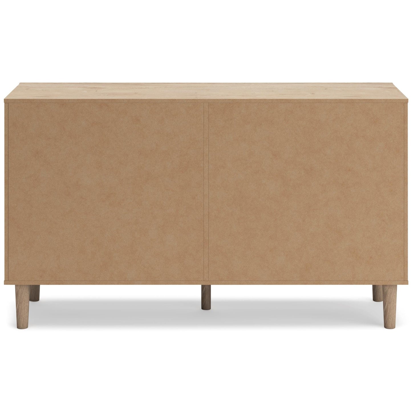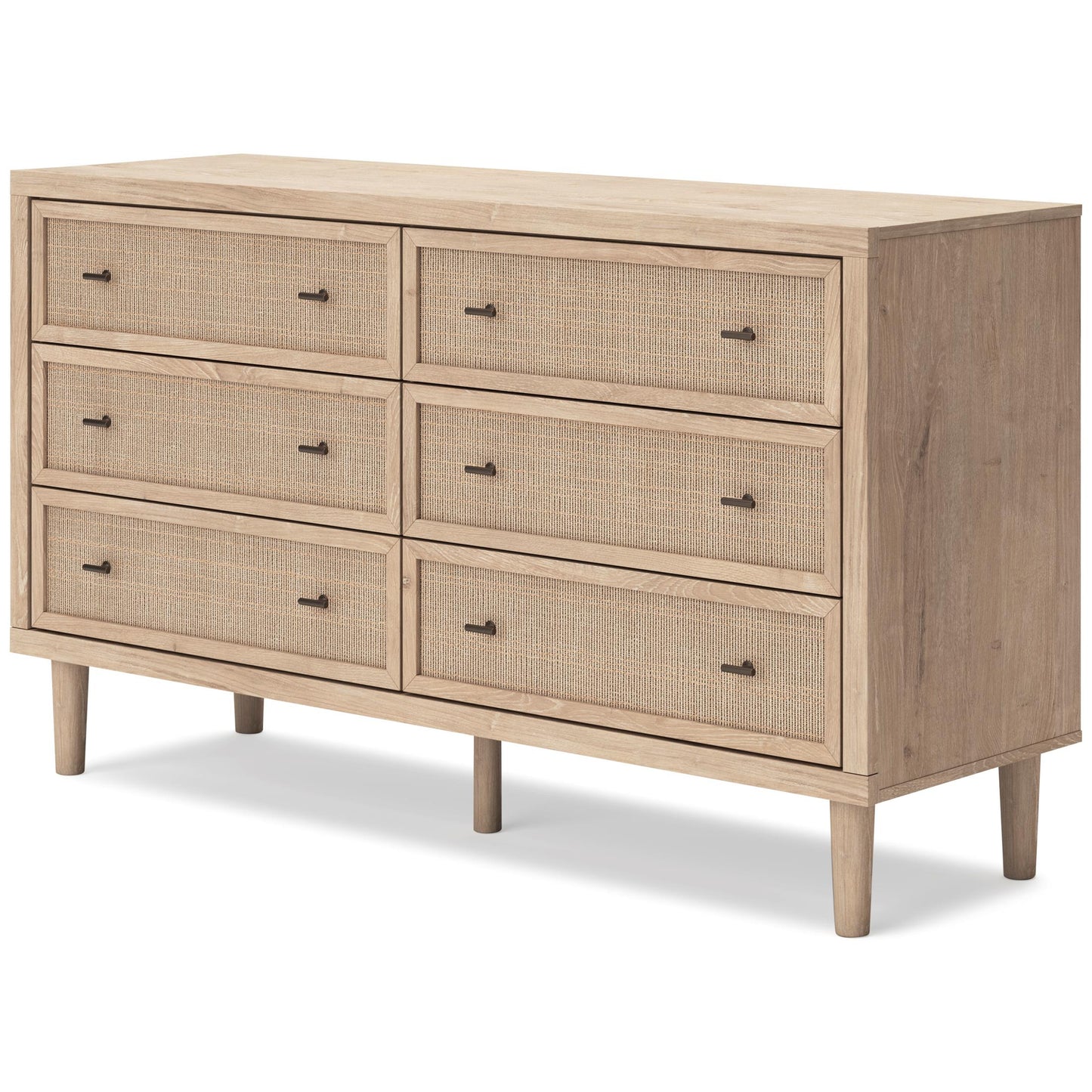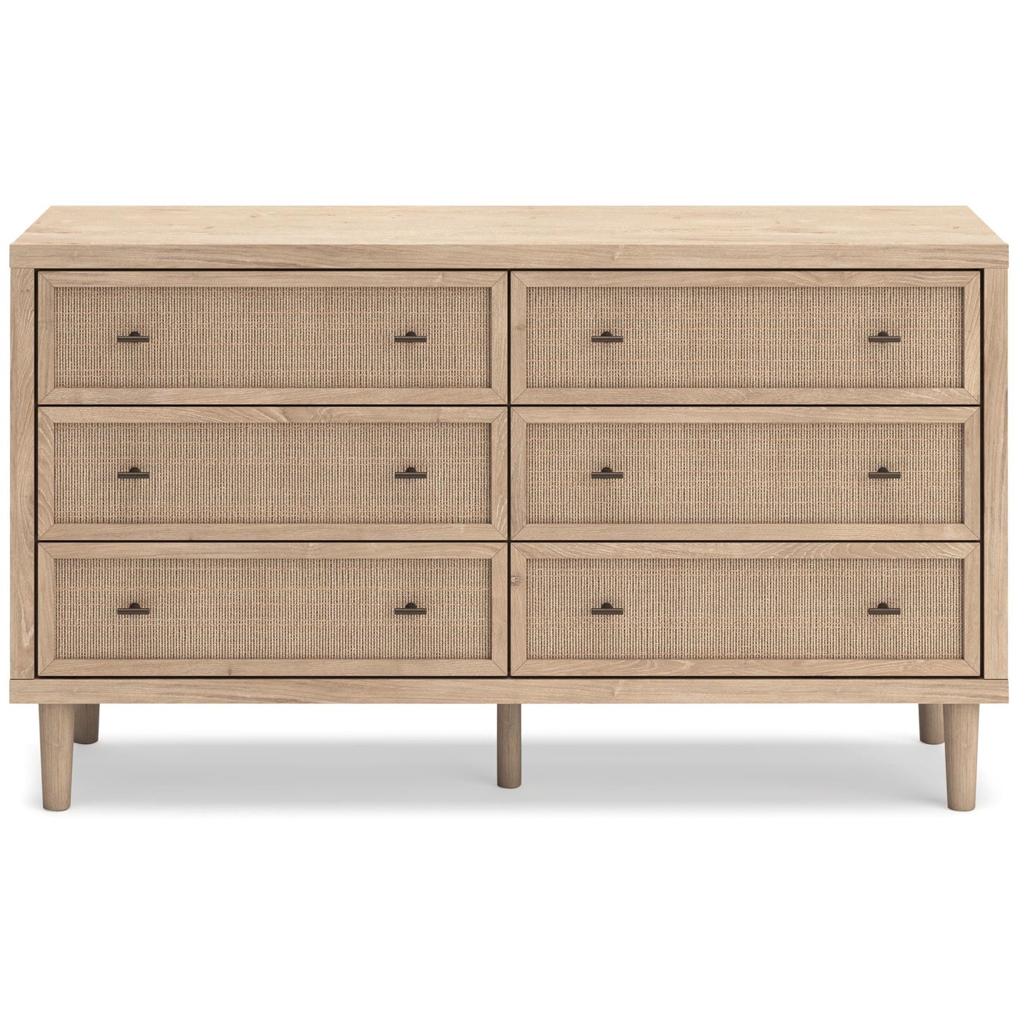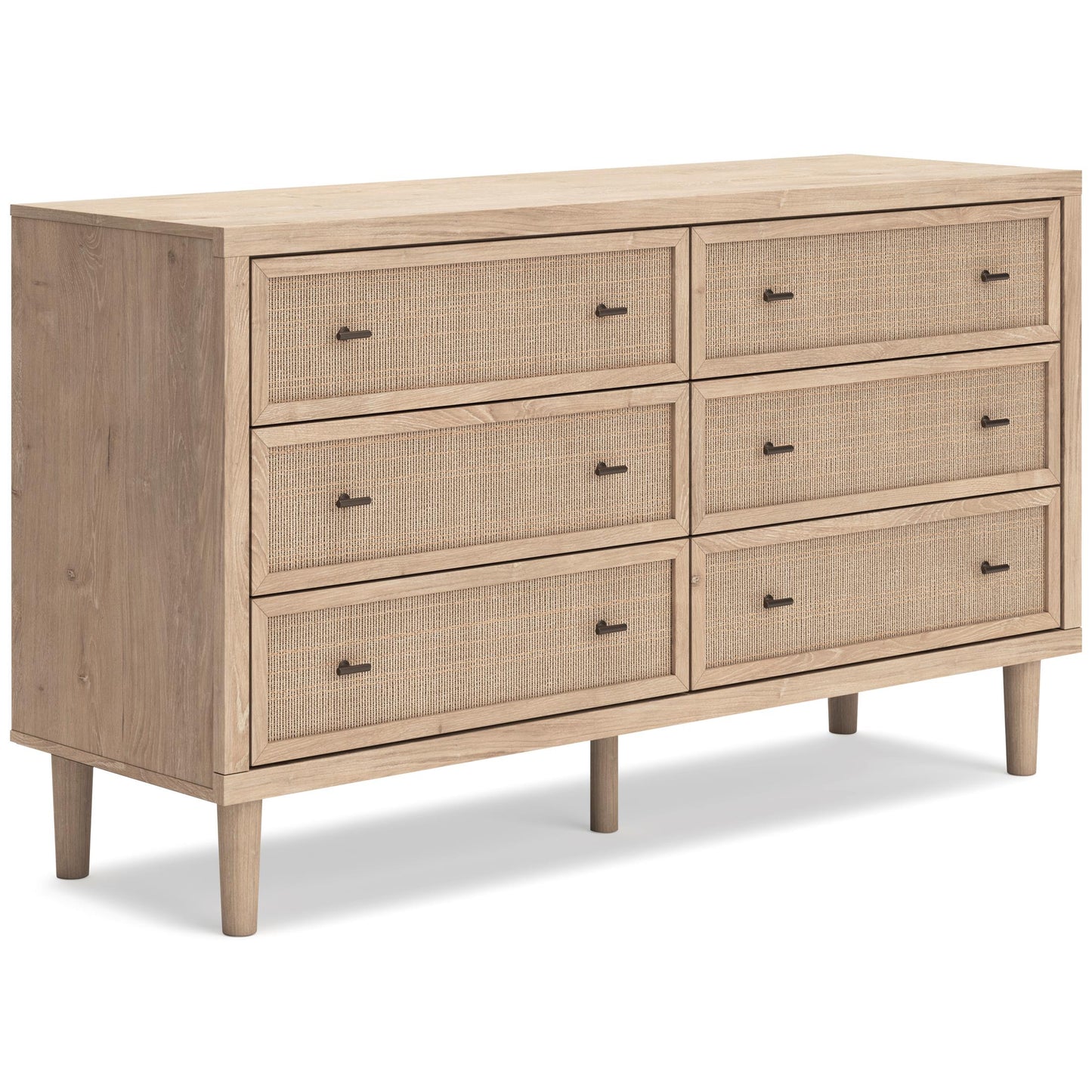 Clean-lined and contemporary—but far from stark—this dresser is a fresh style awakening. Pairing a light finish with replicated oak grain and textured beige cane details, its mixed materials bring a naturally versatile vibe to your bedroom. Sleek, simple hardware plays perfectly with the modern aesthetic. Prepare to have your mind blown by the vast universe of possibilities that await within the spacious drawers.