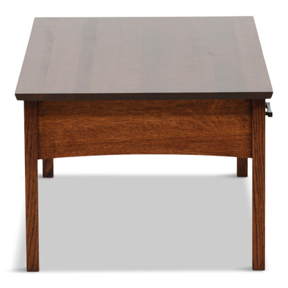 The Heartland Mission table collection invokes the spirit of the American Mission period in both styling and construction. Crafted from solid American and mid-Western Oak, this table collection features a quarter-sawn planking and period correct hardware. The table collection is available in may finished and other wood species including Birch and Cherry. Proudly made in the USA!
