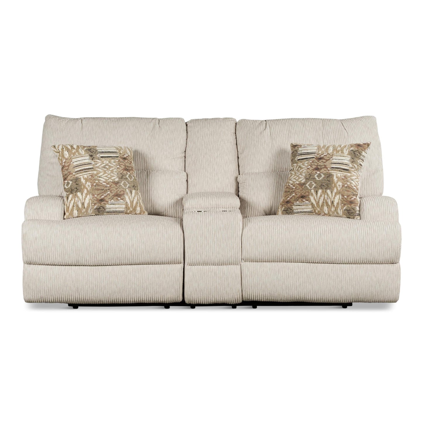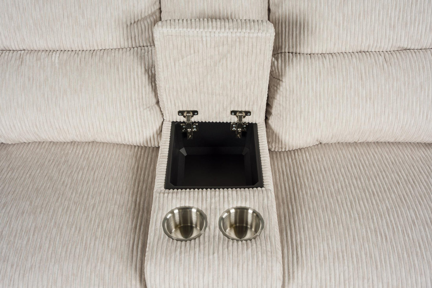 Reclining furniture was never so stylish and comfortable! This oversized plush reclining collection features power seat and power headrest operation. All pieces in this collection have functional USB ports on power switches for your convenience. The loveseat features a drop down table for hidden storage. Durable polyester corduroy cover in a neutral color fits easily into any decor.