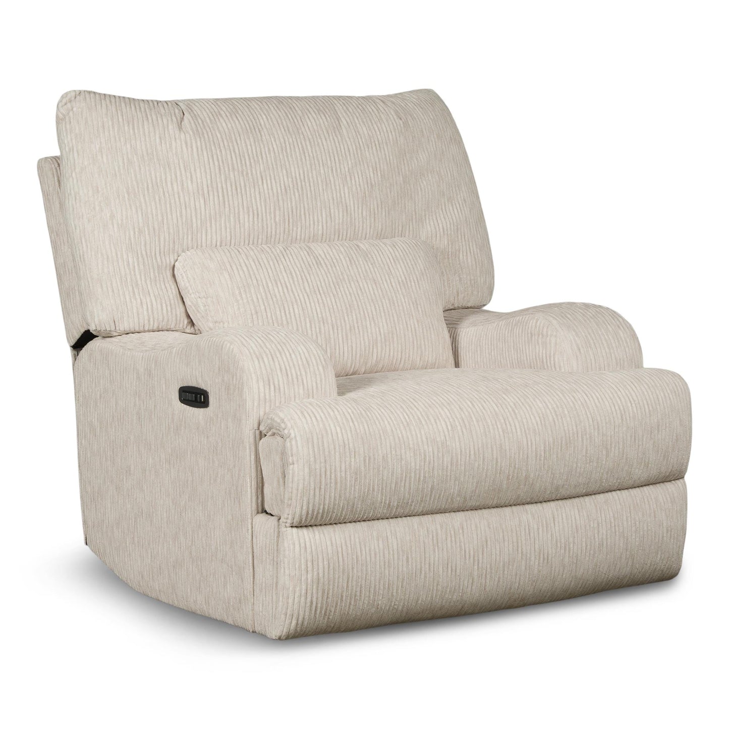 Reclining furniture was never so stylish and comfortable! This oversized plush reclining collection features power seat and power headrest operation. All pieces in this collection have functional USB ports on power switches for your convenience. Durable polyester corduroy cover in a neutral color fits easily into any decor.