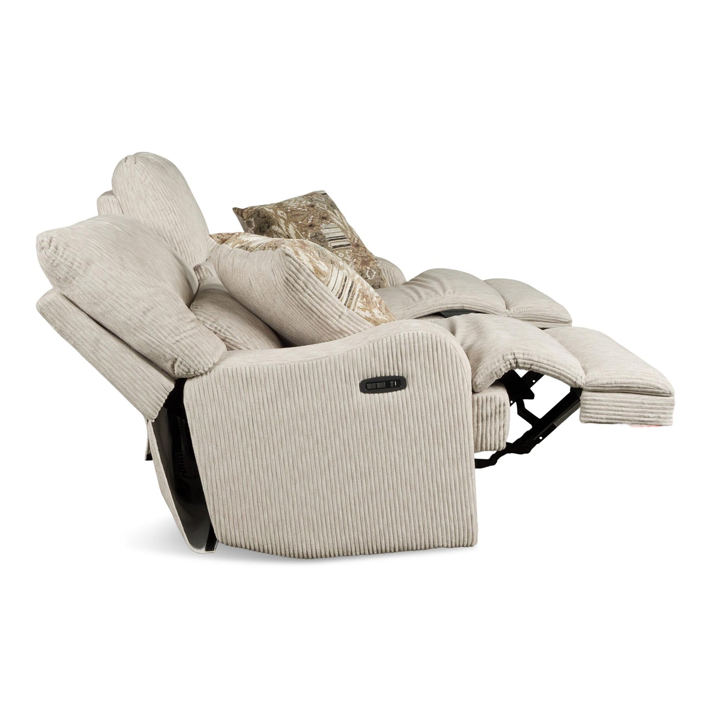 Reclining furniture was never so stylish and comfortable! This oversized plush reclining collection features power seat and power headrest operation. All pieces in this collection have functional USB ports on power switches for your convenience. Durable polyester corduroy cover in a neutral color fits easily into any decor.