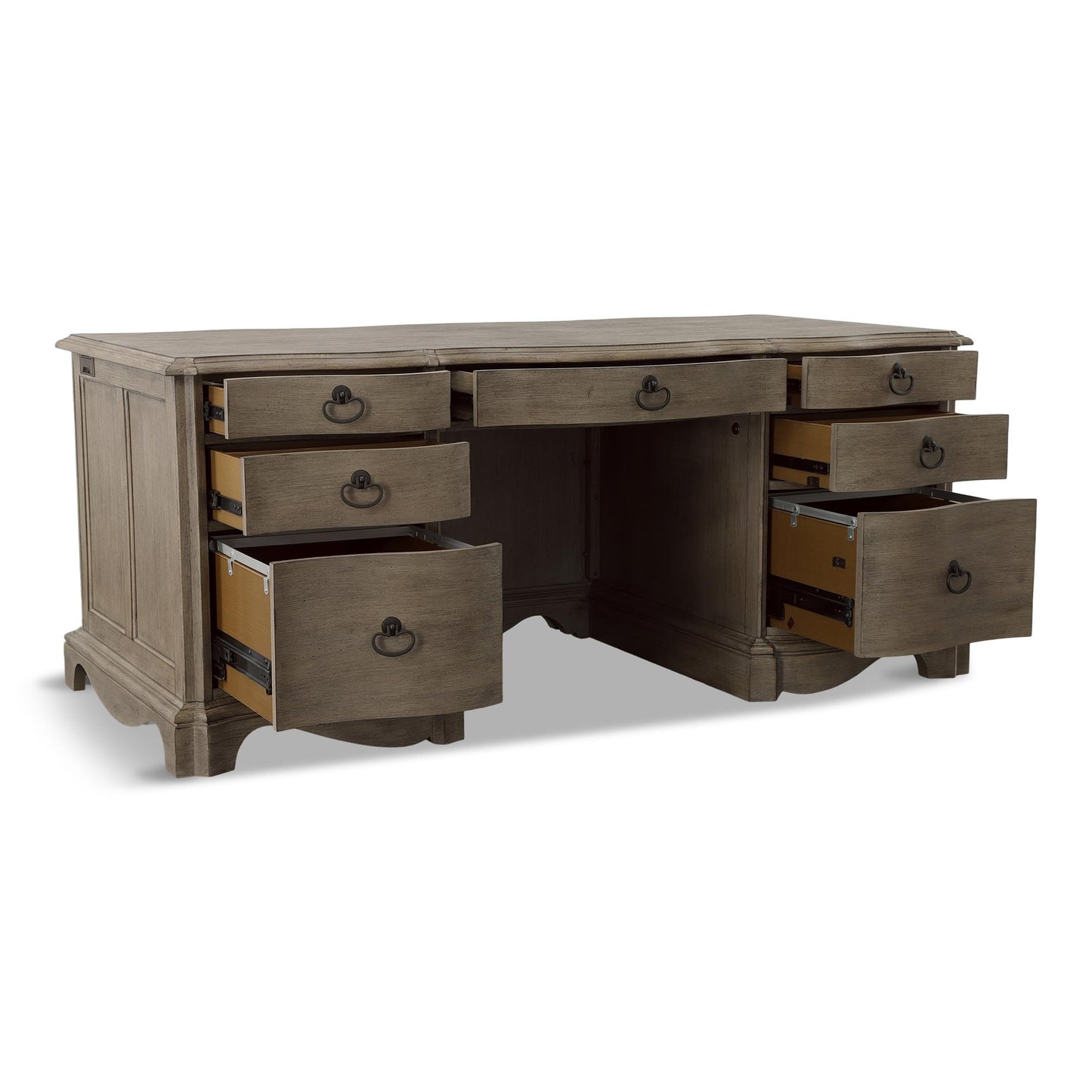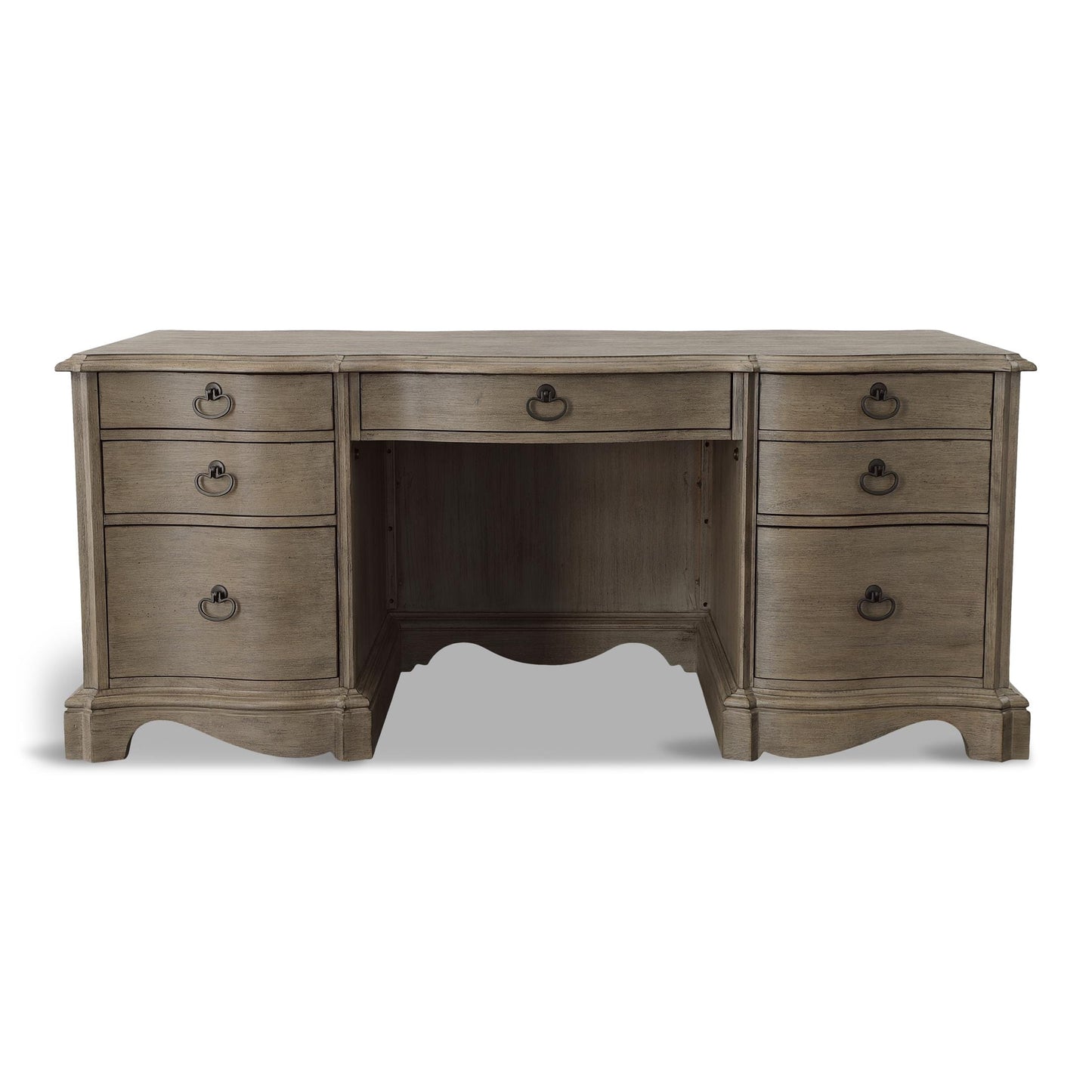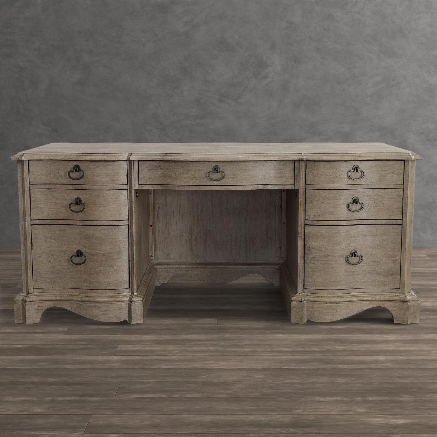 With a casual attitude and a sun-washed ambiance inspired by the Mediterranean island for which it is named, the Corsica Executive Desk is crafted of acacia veneers with a wire-brushed, artisan light natural finish. Stylish details include a scallop-like carved base and shaped ring that pulls in a burnished bronze finish. Seven drawers, including 2 top drawers on each side containing removable divider inserts. There’s one removable writing slide and one removable pencil drop-in that can be used in either top drawer. The bottom two drawers on each side are locking file drawers. Impeccable details and the quality you deserve – that’s what makes L Design Studio special. We’ve carefully chosen each piece in the collection to last for decades while giving your home a unique touch. Indulge yourself, nurture your family, and welcome your guests. With a style this timeless, making your home beautiful is easy. Available online and at select locations near you.