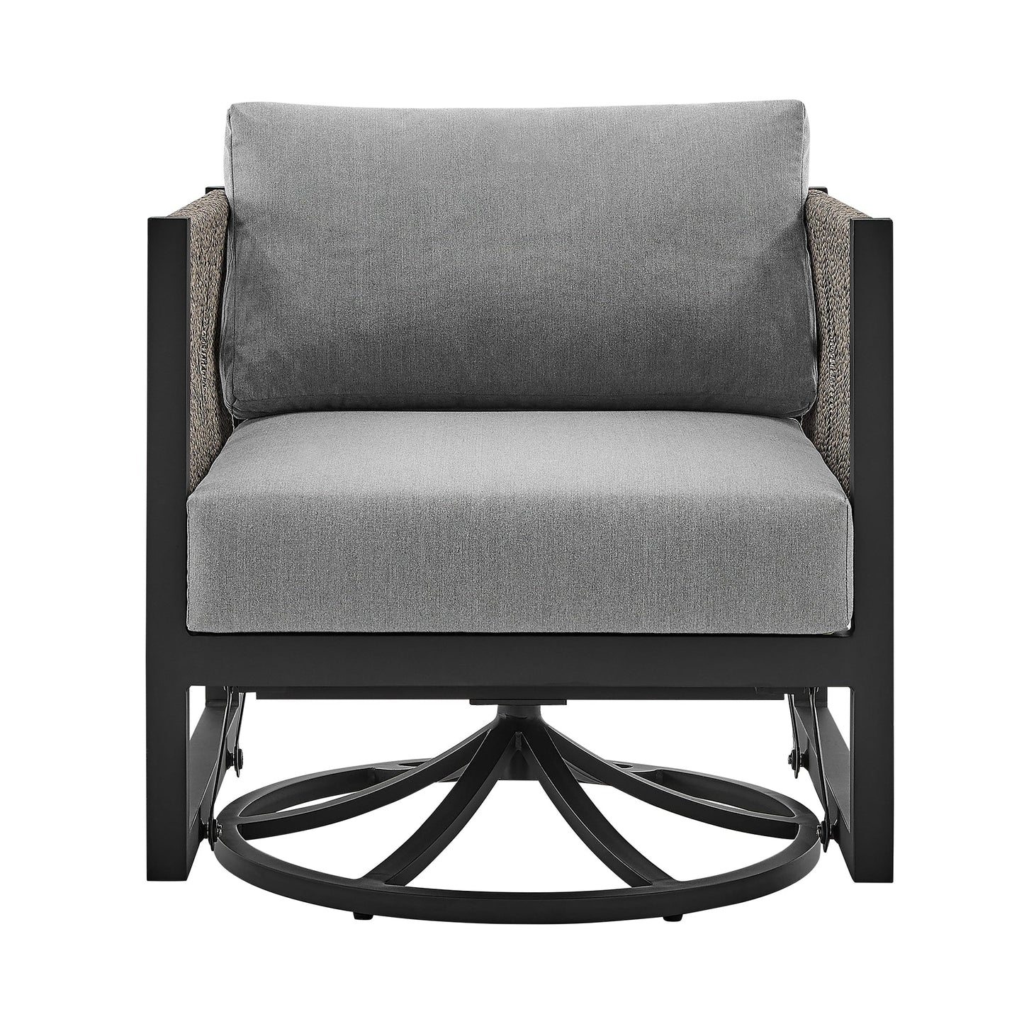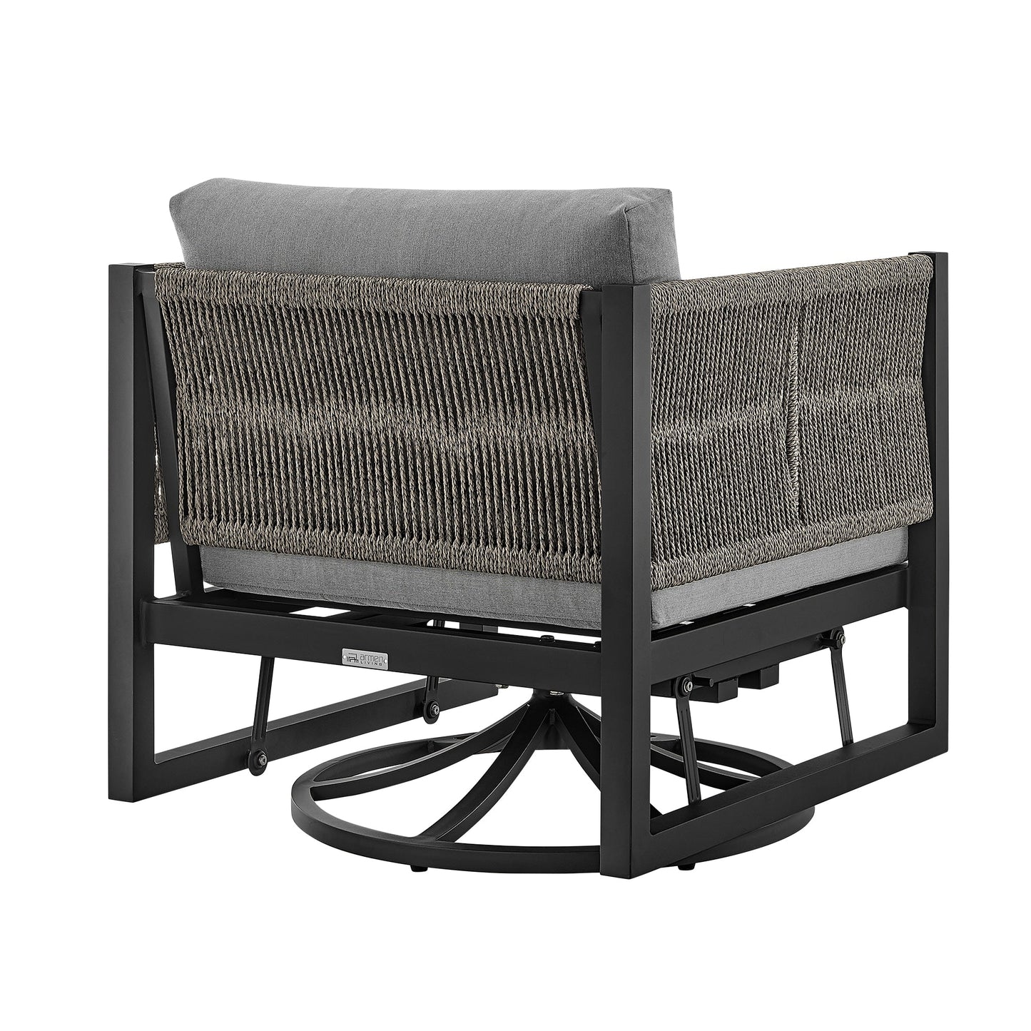 Style and mobility come together with the Cuffay Outdoor Patio Swivel Lounge Chair in Aluminum with Rope and Cushions. This 360-degree swivel and gliding functionality add comfort, further enhanced with the high-density foam cushions. The durable materials come together beautifully to create a long lasting and fashion forward seating experience. The aluminum frame is ideal as aluminum cannot rust. This is especially beneficial in areas where moisture is present, making it a premium choice among residents of coastal cities or regions with high humidity. Polyester fabric is very easy to clean. This makes it a good option for outdoor cushions that will probably be covered with dust, dirt, and other outdoor grime regularly. In addition, most outdoor furniture is used as part of an eating area, making more stains and messes a real possibility. Polyester cushion covers can be thrown in the laundry and are naturally difficult to stain permanently.